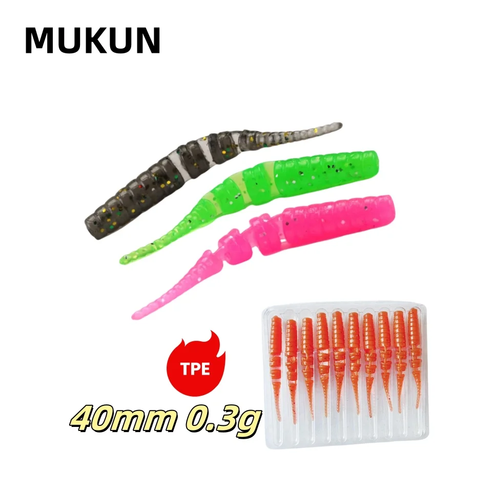 MUKUN-Mini señuelo de pesca de silicona TPE, 10 piezas, 0,3g/40mm, Artificial, Swimbait Jig, Wobbler Bass Bait, aparejos de pesca