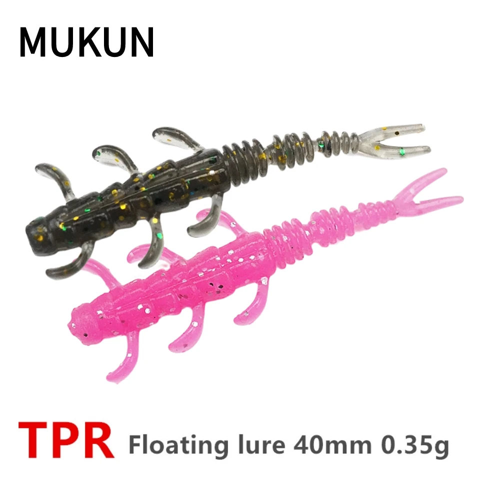 MUKUN-Mini Señuelos de Pesca de gusano suave, cebos artificiales de silicona de 0,35g/40mm, 10 piezas, TPR, aparejos de Pesca de carpa