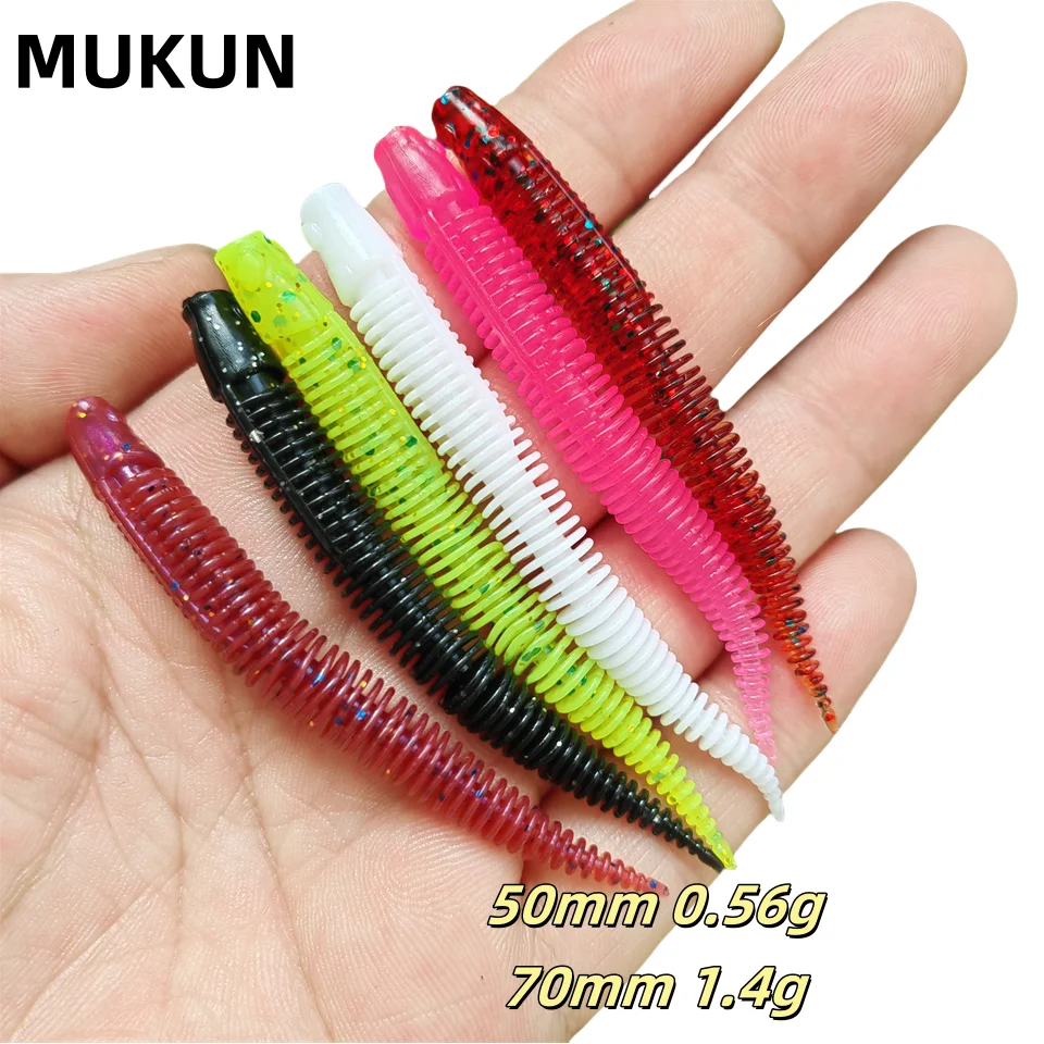 MUKUN nuevo 20 piezas Pesca pequeño cebo de gusano señuelo 50mm 70mm 0,56g 1,4g Leurre Peche calamar aparejos de pesca lubina Pike