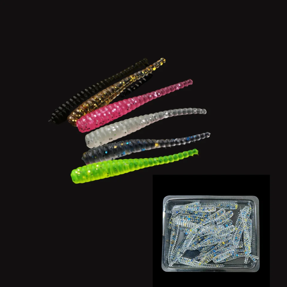 MUKUN nuevo señuelo suave 30 Uds cebo de silicona 35mm 0,3g Pin de cola recta Swimbait Wobblers gusano lubina carpa aparejos de pesca en roca