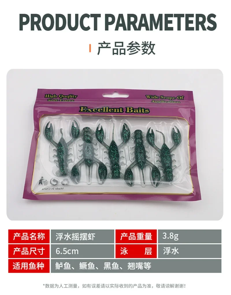 MUKUN-señuelo de pesca flotante de cangrejo, 5 uds., 65mm/4g, cebo de silicona suave, plantillas Wobbler, Swimbait Artificial, aparejos de pesca de lubina