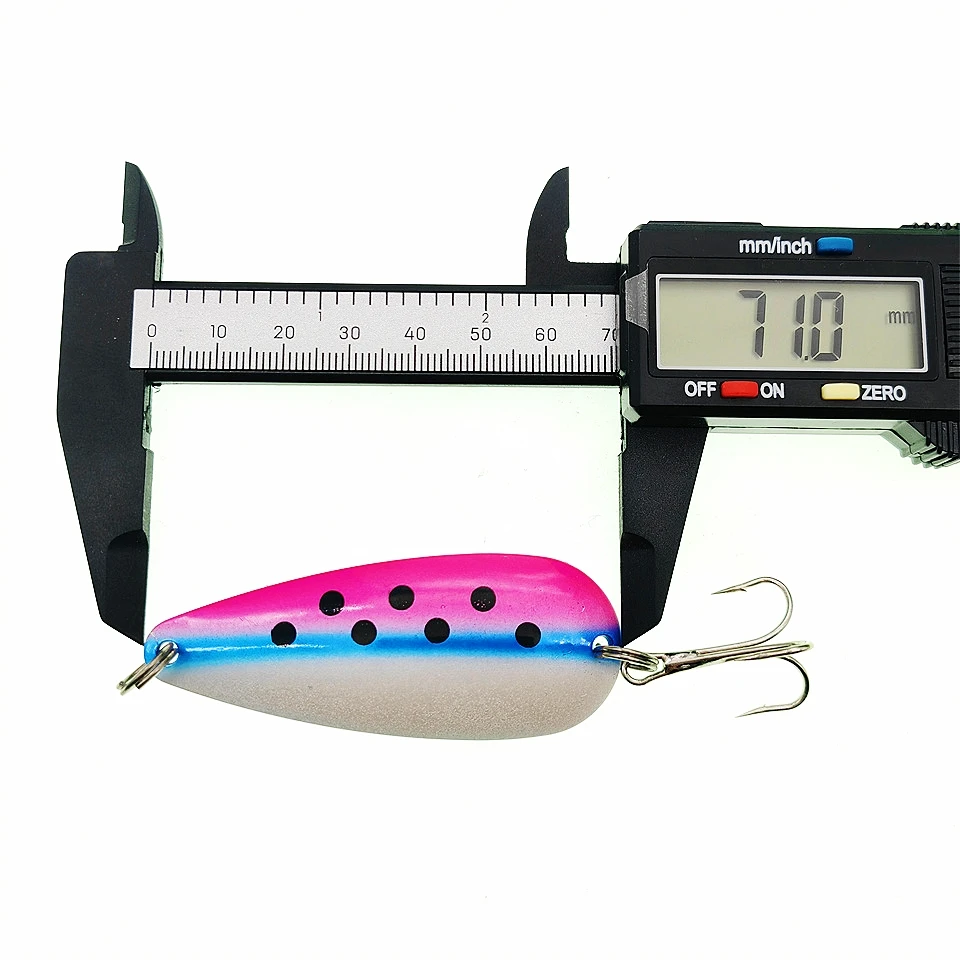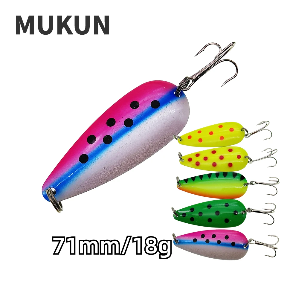 MUKUN-señuelo de pesca giratorio de Metal, 1 piezas, 71mm, 18g, cebos duros, lentejuelas de colores, Paillette de ruido, aparejos de gancho triple