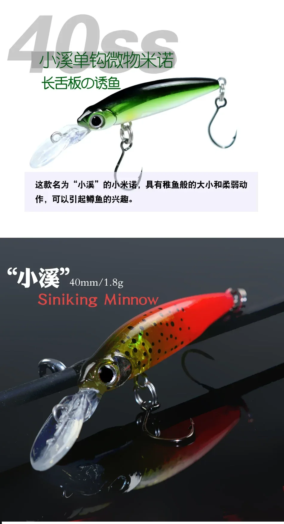 MUKUN-señuelo de pesca Micro de hundimiento lento, 1,8G, 40mm, placa de lengua larga, anzuelo único, cebo para la boca de trucha y pececillo
