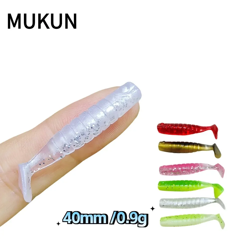MUKUN-SEÑUELOS blandos de goma para pesca en roca, cebos artificiales de gusano suave, 4cm, 0,9g, 10 unidades por lote