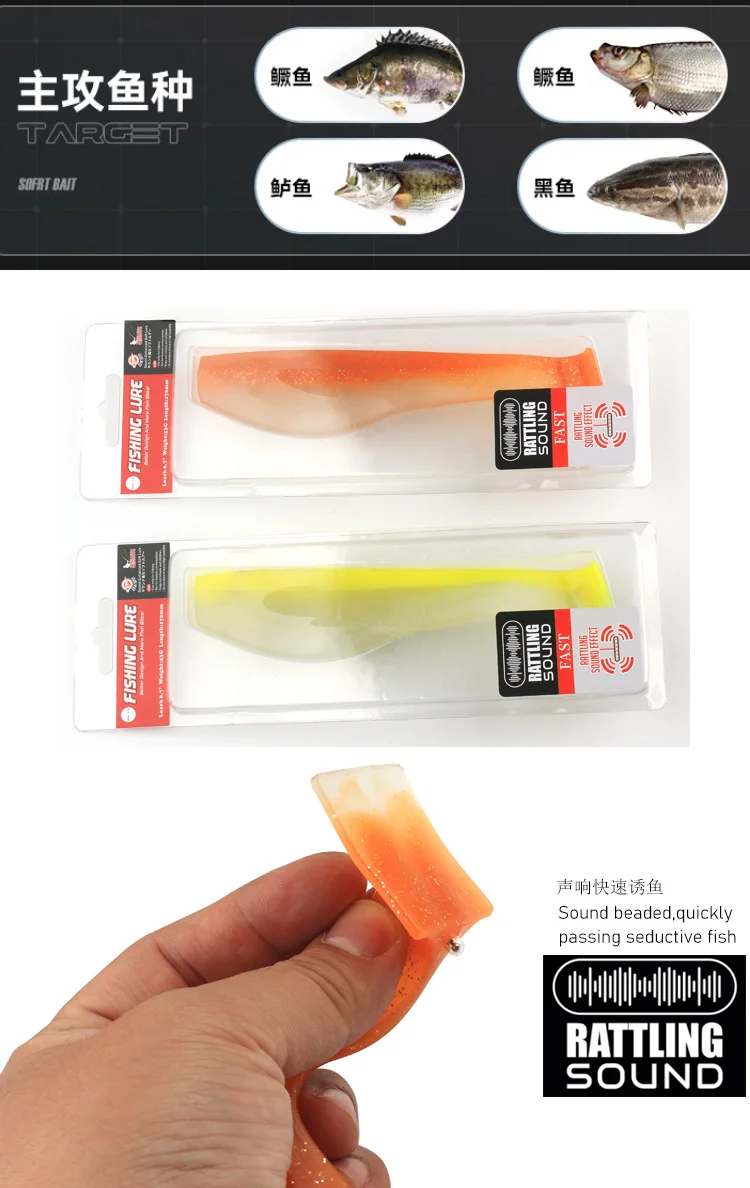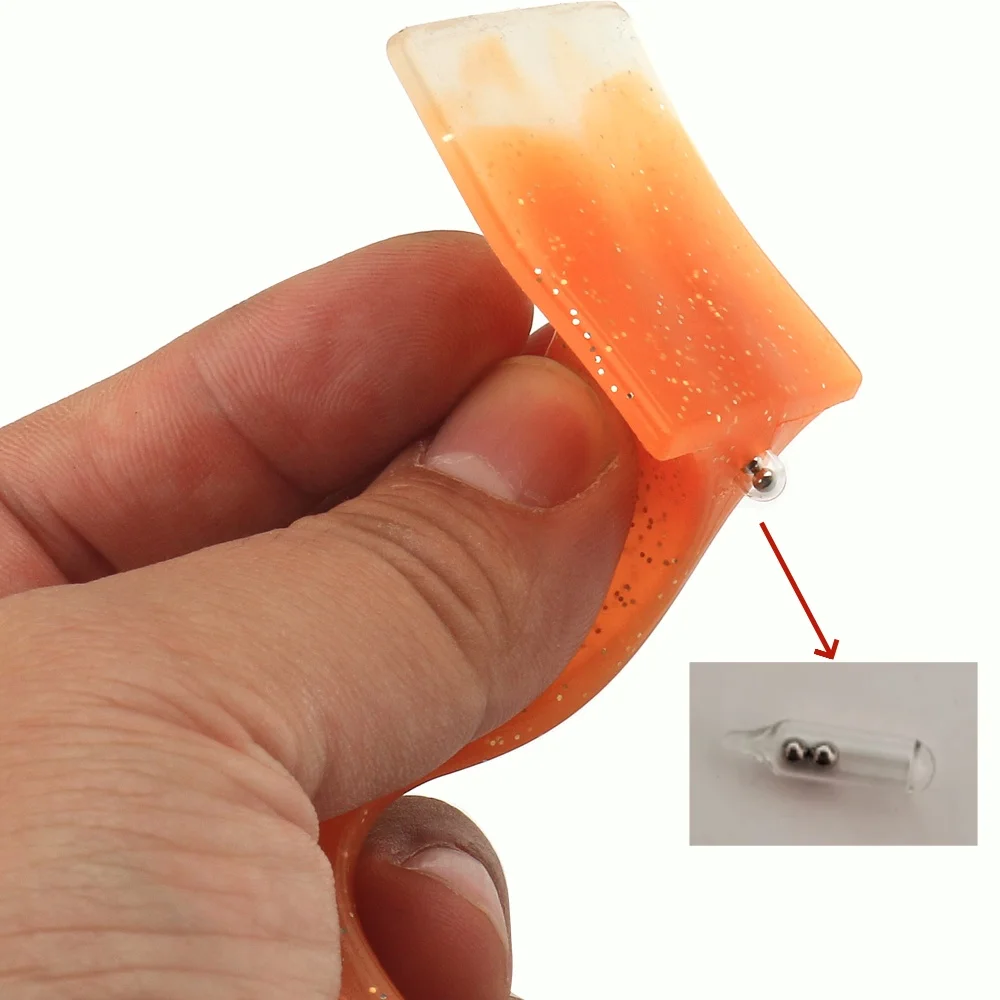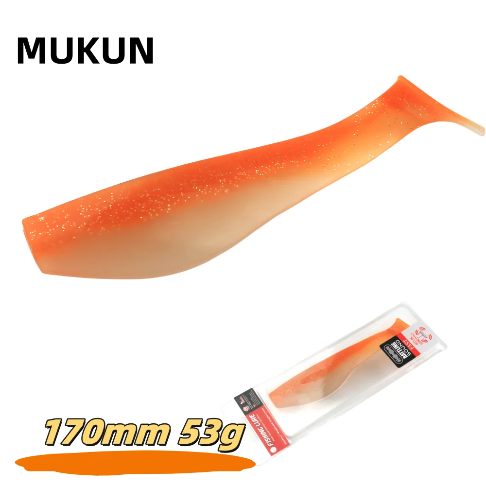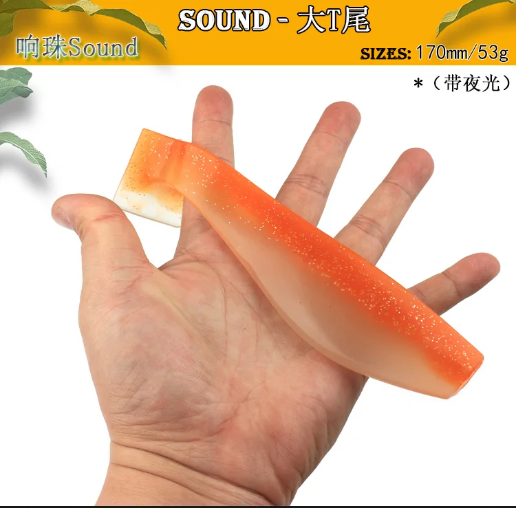 MUKUN-señuelos de pesca blandos con cola en T, 17CM, 52G, cebo de pesca luminoso con cuentas de sonido, pesca en el mar, gran juego para atún, lubina y tiburón