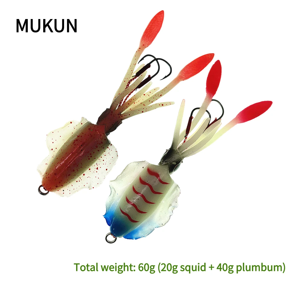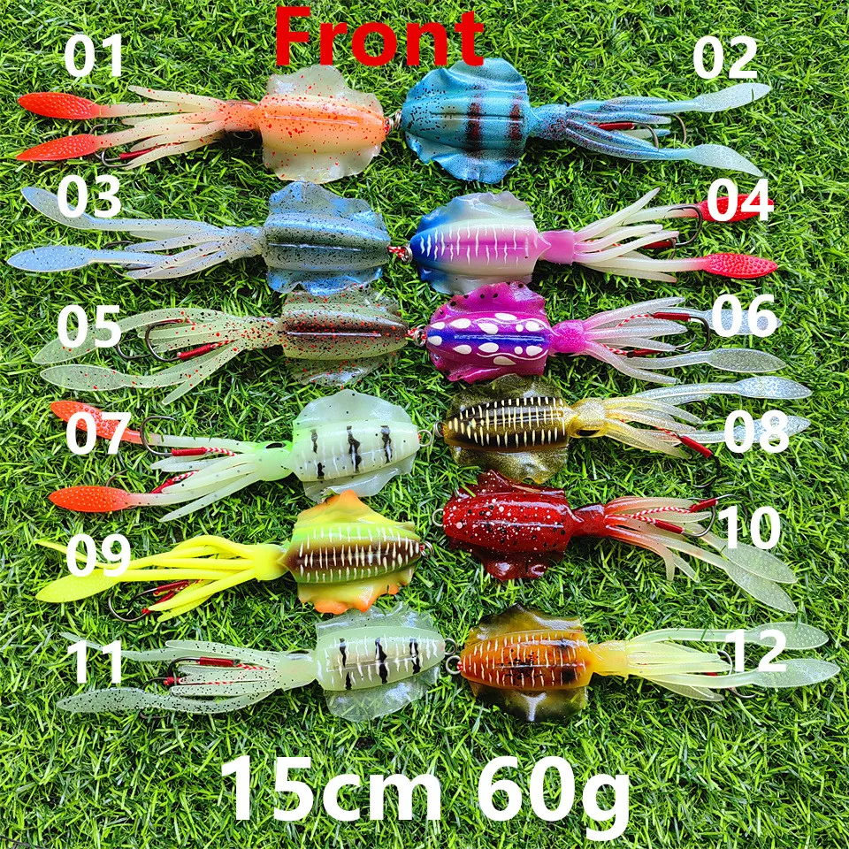MUKUN Señuelos de Pesca de calamar biónico, simulación luminosa UV, 60g, 15cm, Crankbait Artificial, Wobbler, cebo blando, aparejos de pesca