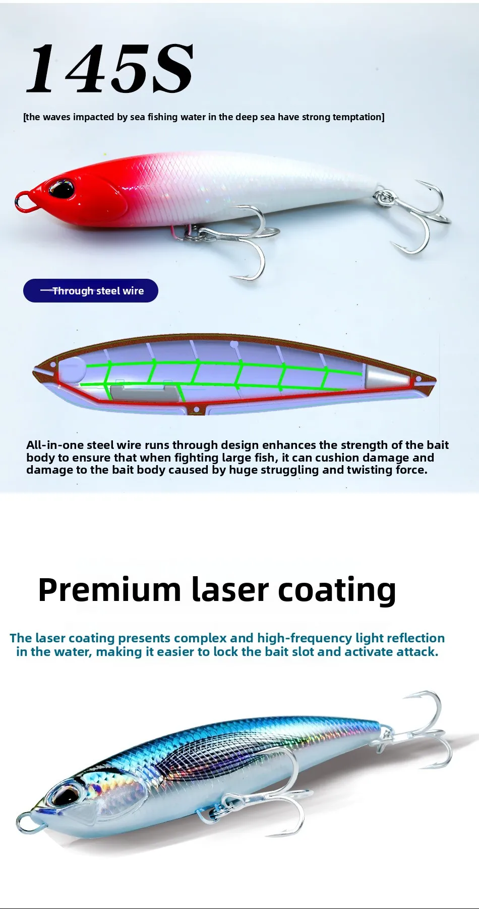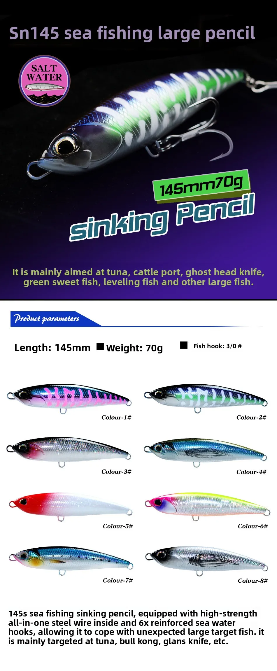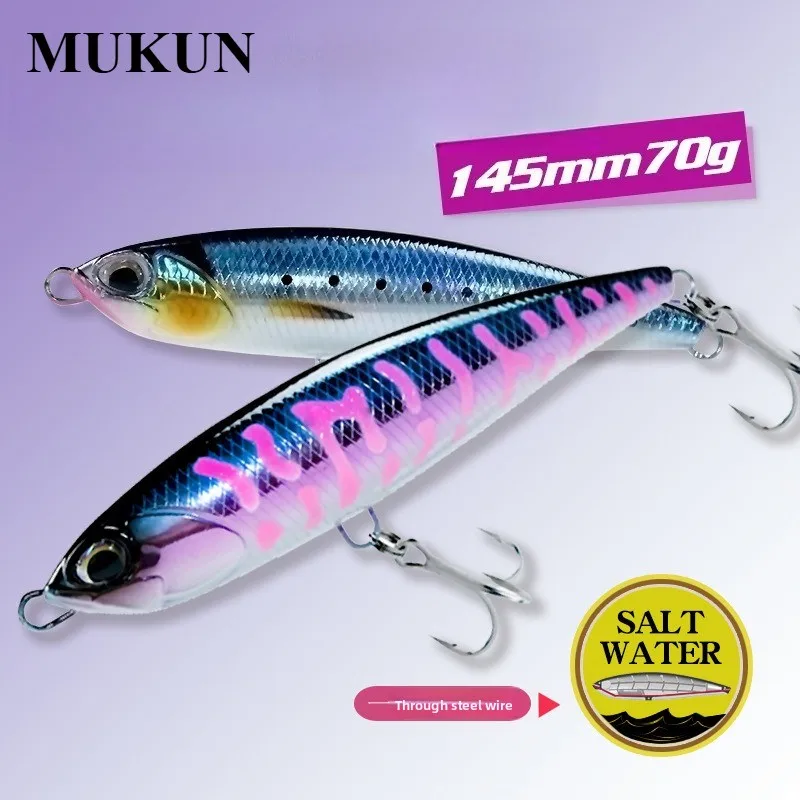 MUKUN-señuelos de pesca con lápiz que se hunden, 145MM, 70G, Wobbler Stickbait, cebo duro Artificial para pesca de atún marino GT