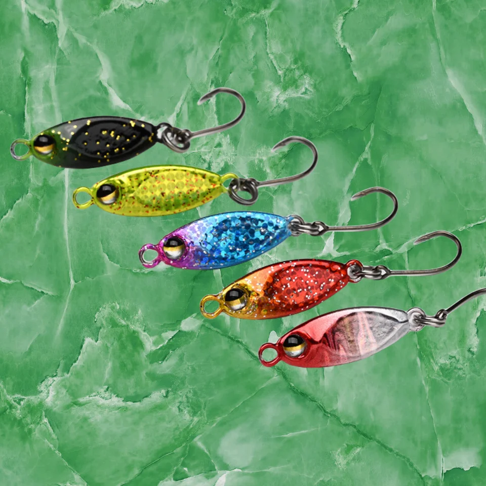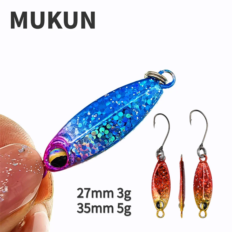 MUKUN-Señuelos de Pesca Micro Jigging, 1 piezas, 3g/5g, plantilla de pescado pequeño, cebo duro, cuchara de lubina Artificial, aparejos de un solo gancho