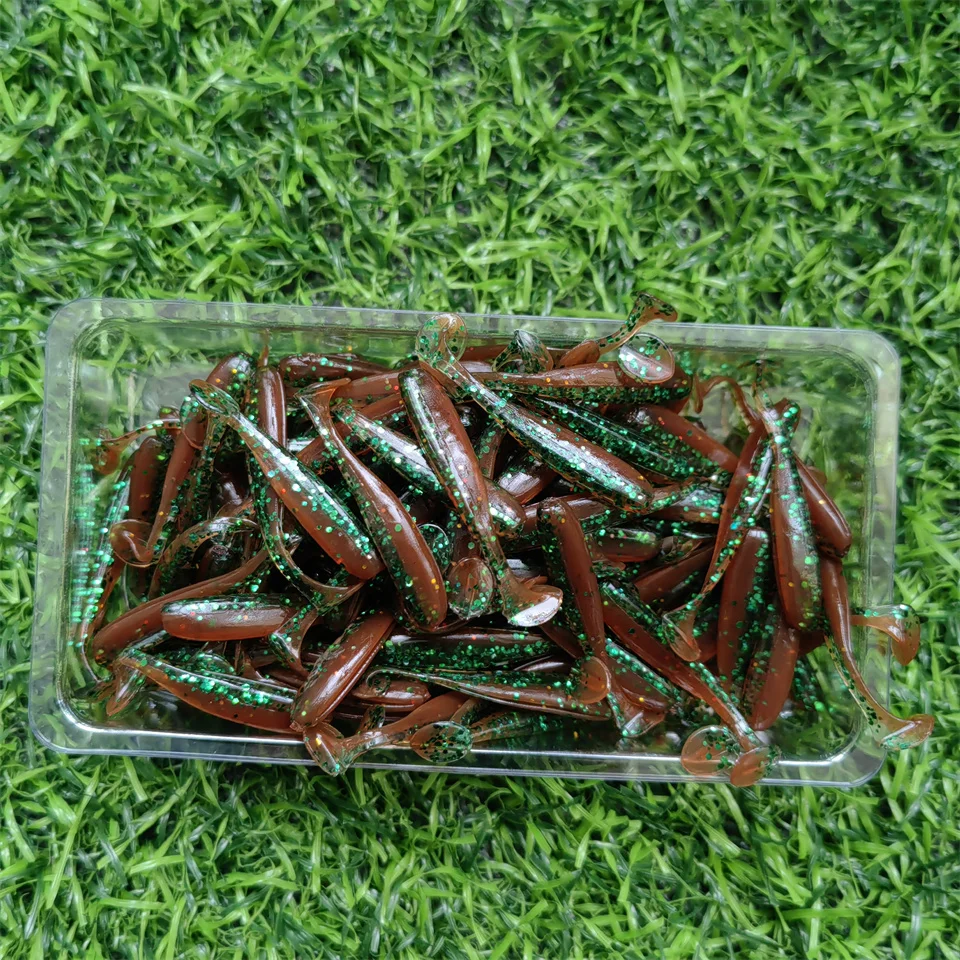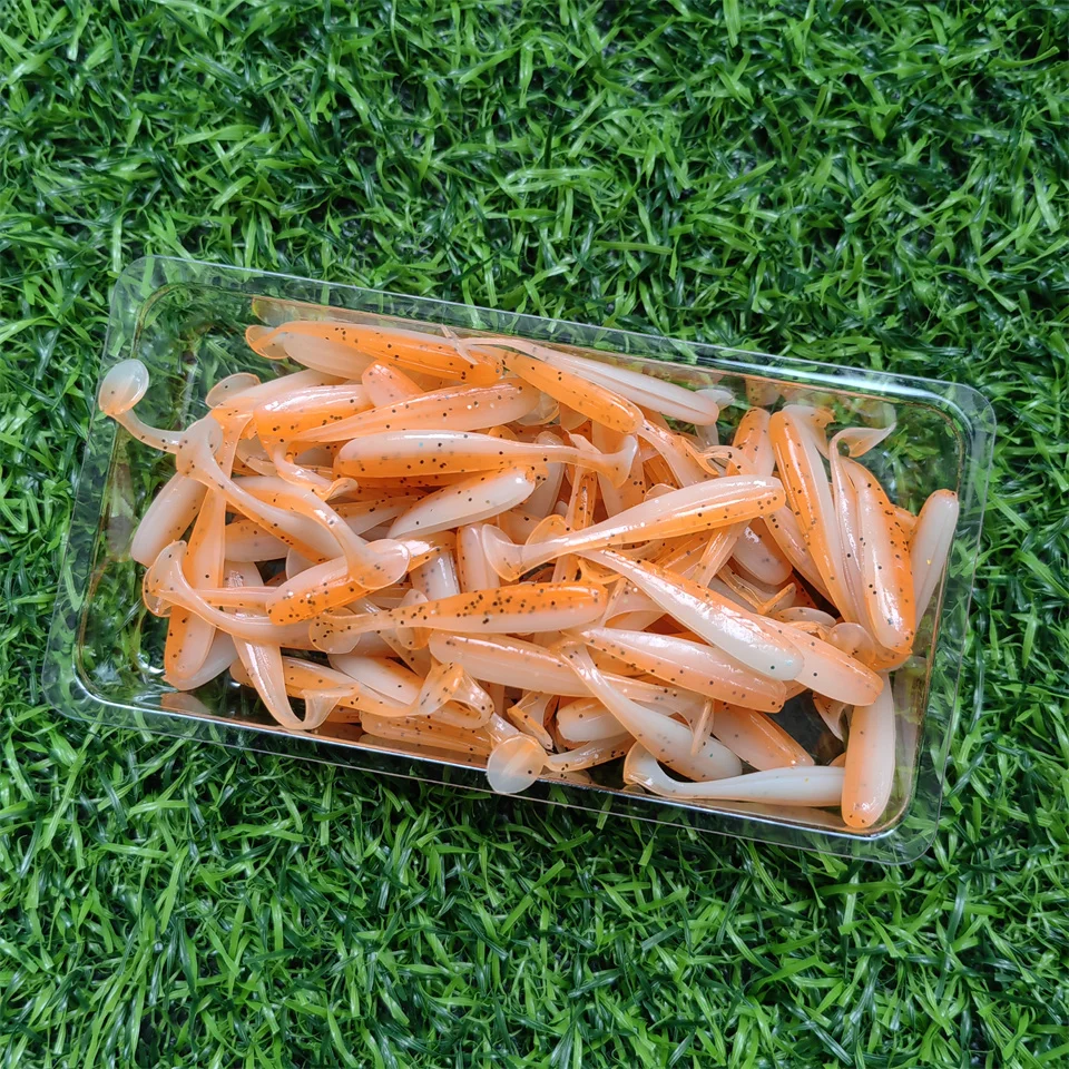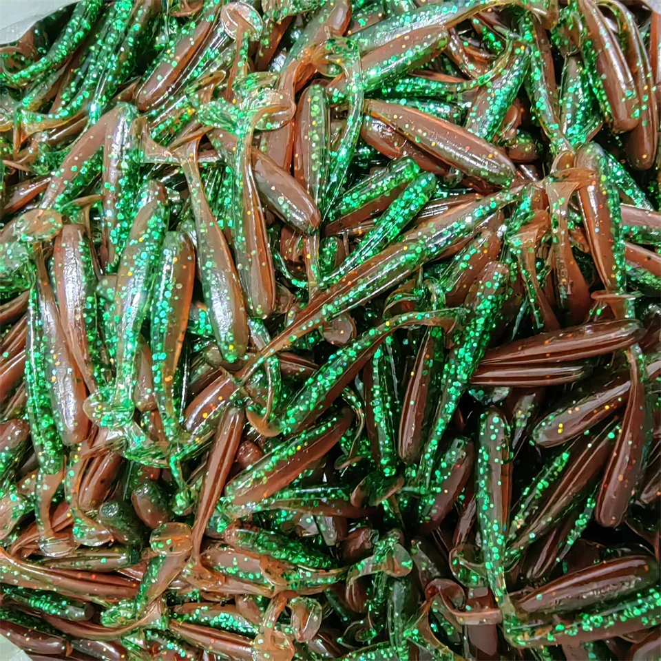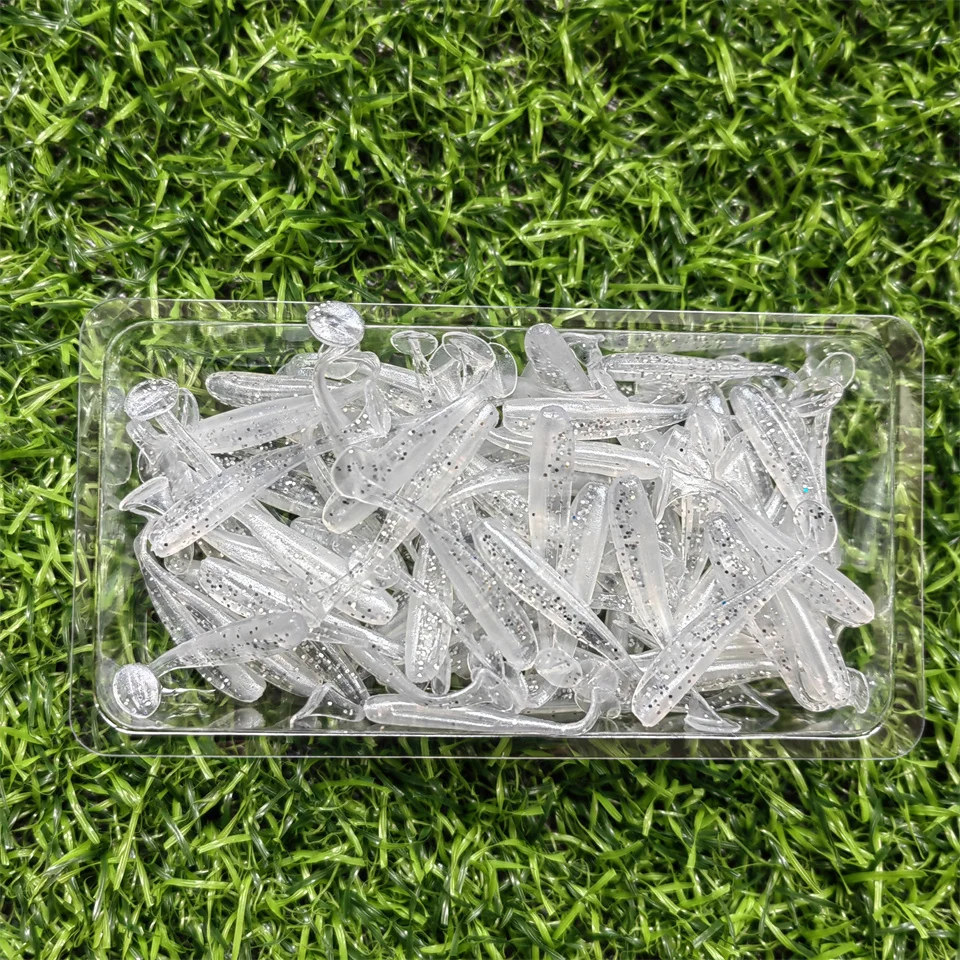MUKUN-Señuelos de Pesca microblandos, 100 piezas, 0,35g/35mm, cola en T, gusano, cebo Artificial pequeño, plantilla Wobblers, aparejos de pesca de Lucio