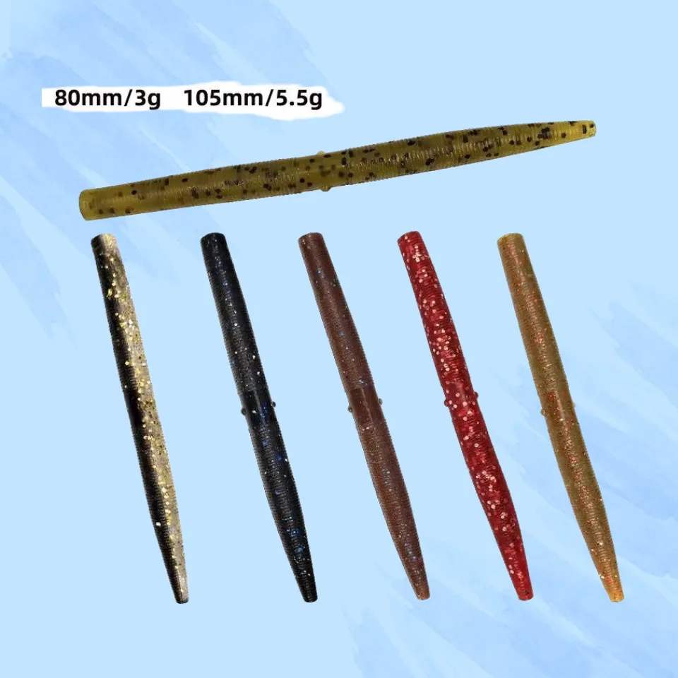 MUKUN-Señuelos de Pesca de silicona, gusanos artificiales de 105mm/5,5g, 80mm/3g, gusanos blandos, olor a pescado, cebos de pesca Jigging de plástico
