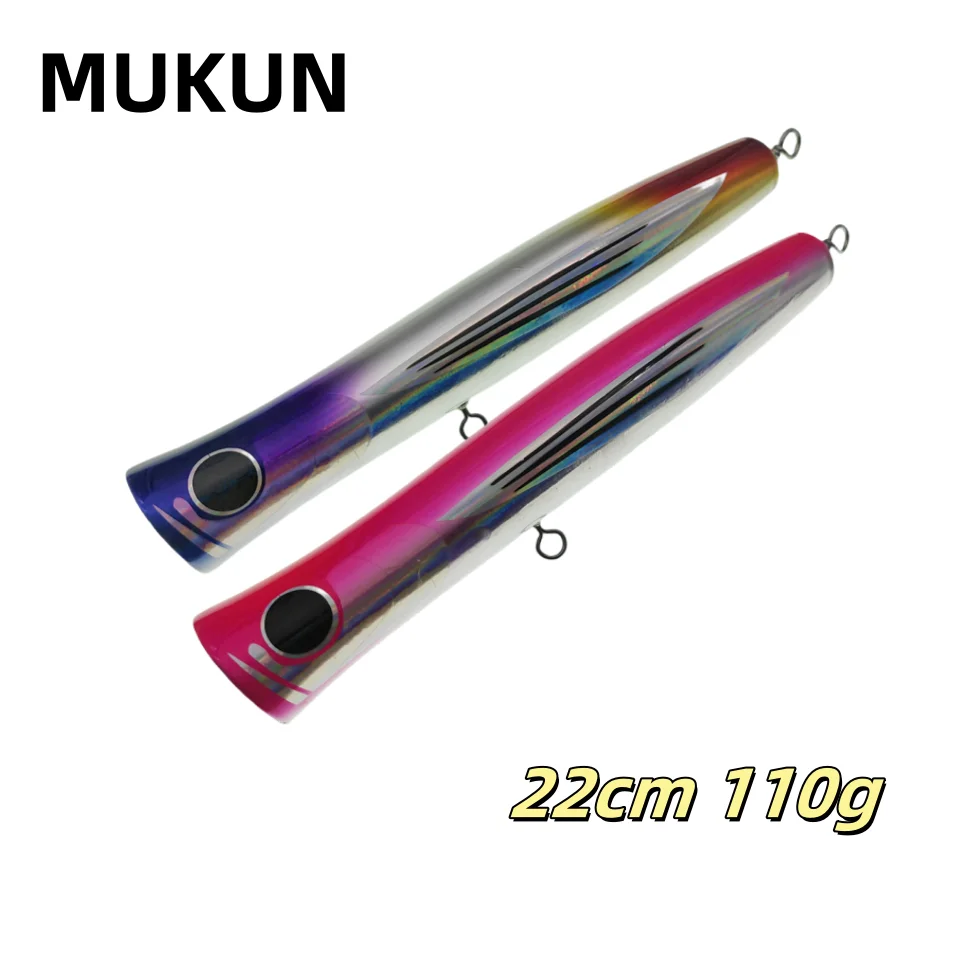 MUKUN Topwater 1 pieza 110g 22cm superficie Popper de madera señuelo de curricán pesca en barco cebo de carpintero Artificial señuelo para aparejos de pesca