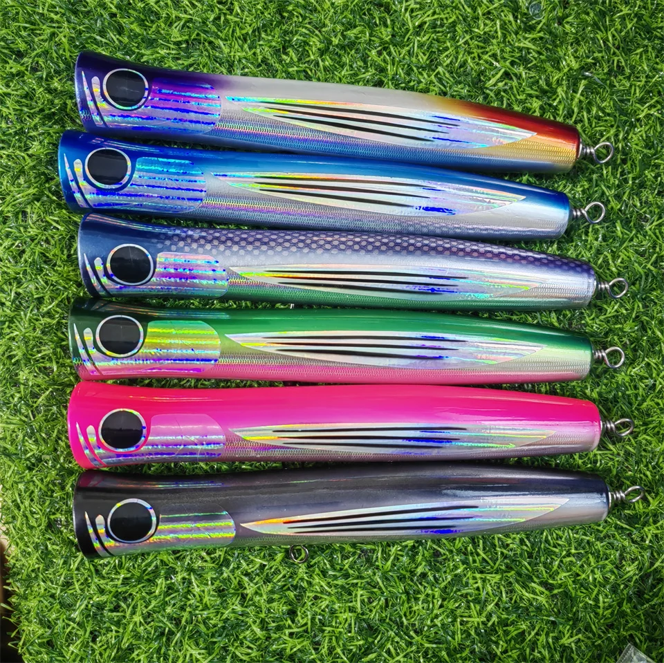MUKUN Topwater 1 pieza 110g 22cm superficie Popper de madera señuelo de curricán pesca en barco cebo de carpintero Artificial señuelo para aparejos de pesca