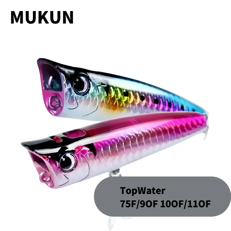 MUKUN Topwater Popper 8,5-30g flotante Rock pop cebos duros artificiales para lubina perca Lucio señuelo de pesca