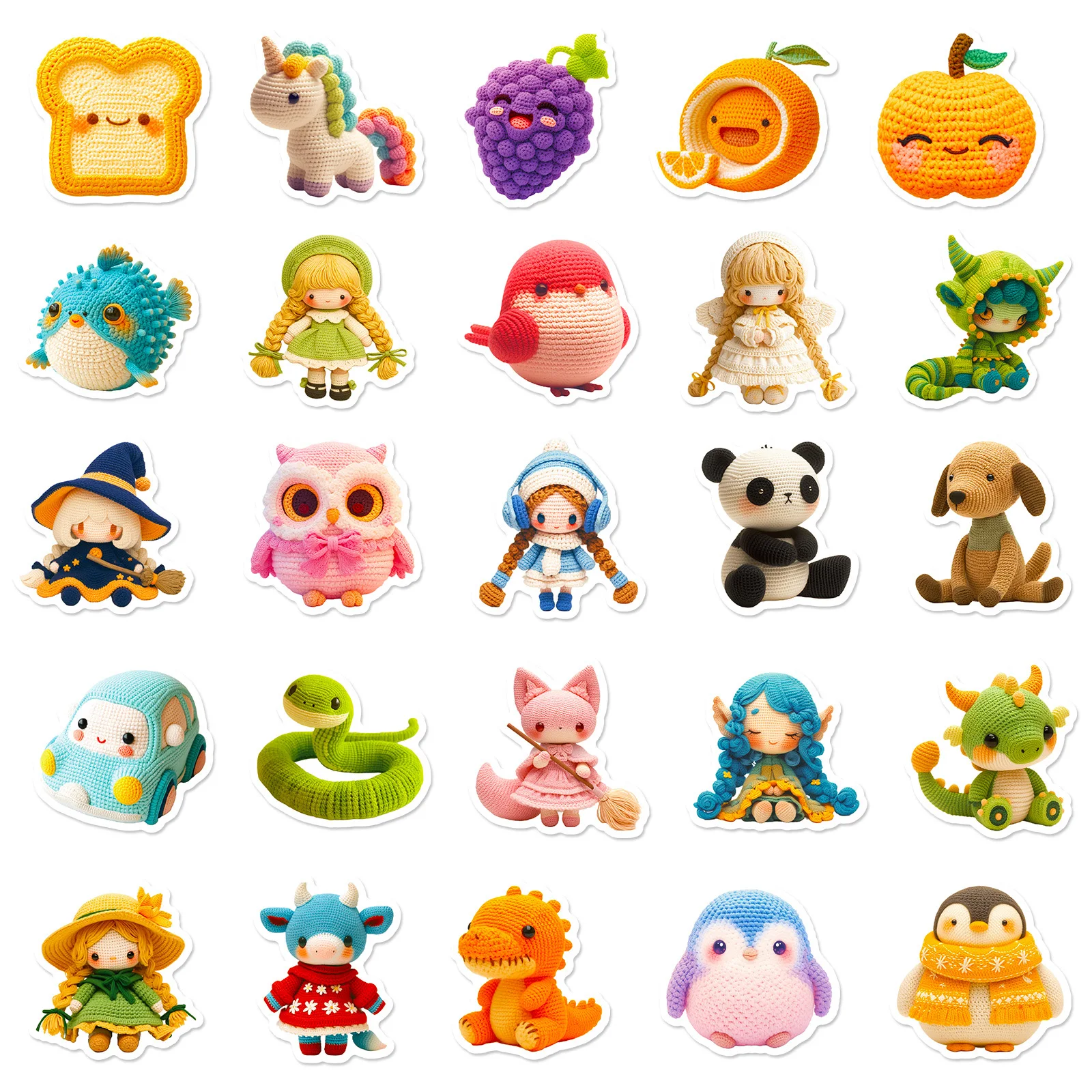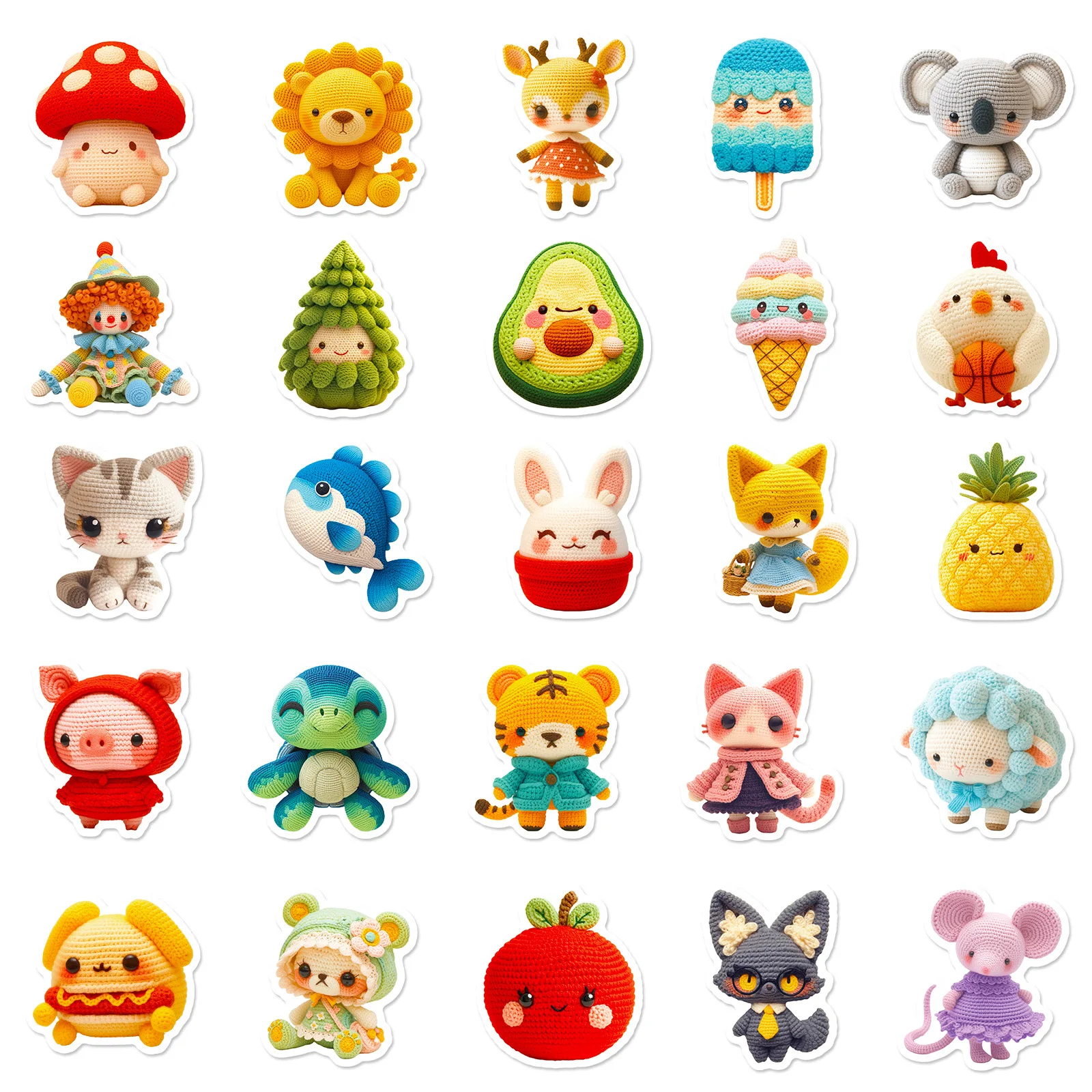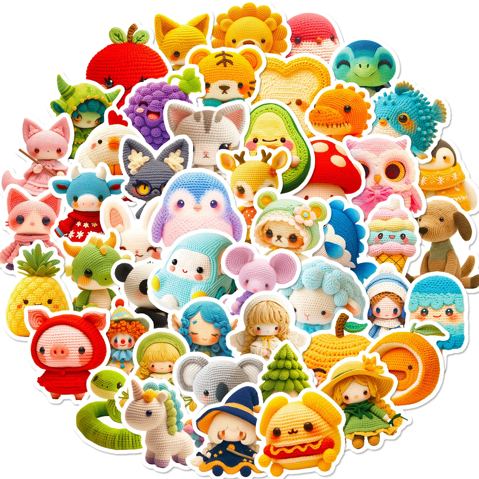 Muñecas de lana de ganchillo para niños, pegatinas de Graffiti de dibujos animados de animales, DIY, teléfono, portátil, Notebook, Maleta, taza, pegatina impermeable, juguete para niños, 50 piezas