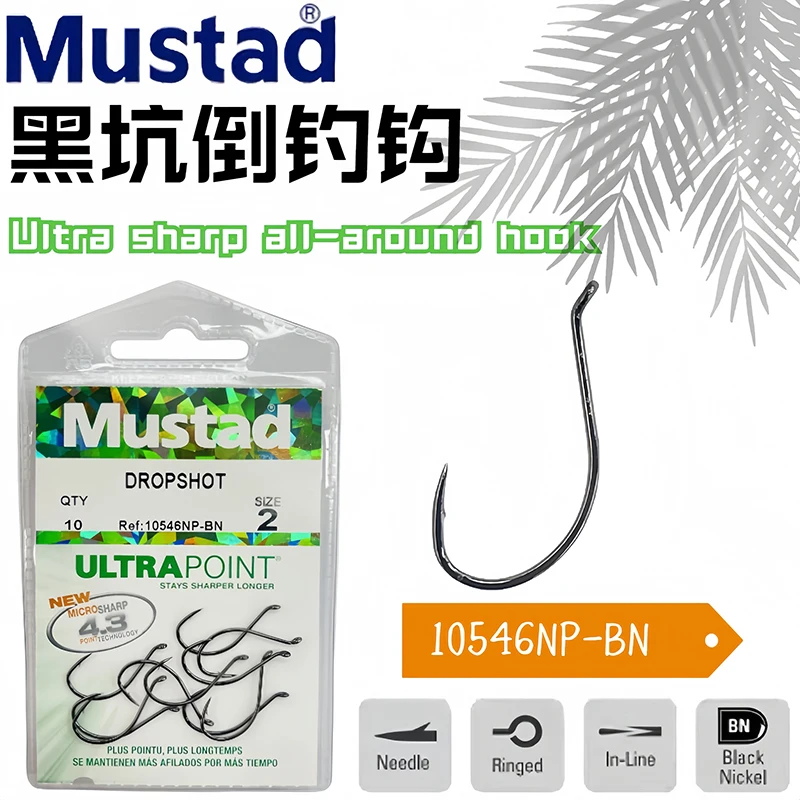 Mustad 10546NP-BN Gancho invertido Ganchillo de camarón de gusano suave Trucha de lubina LuRE Gancho afilado Gancho loco