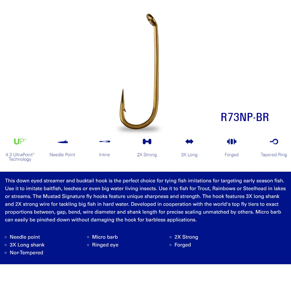 Mustad 30 Uds. Anzuelo de pesca con mosca Signature Streamer con acabado de bronce, 2 uds., fuerte, 3X, vástago largo, Micro púas, anzuelos de trucha forjados con ojo anulado