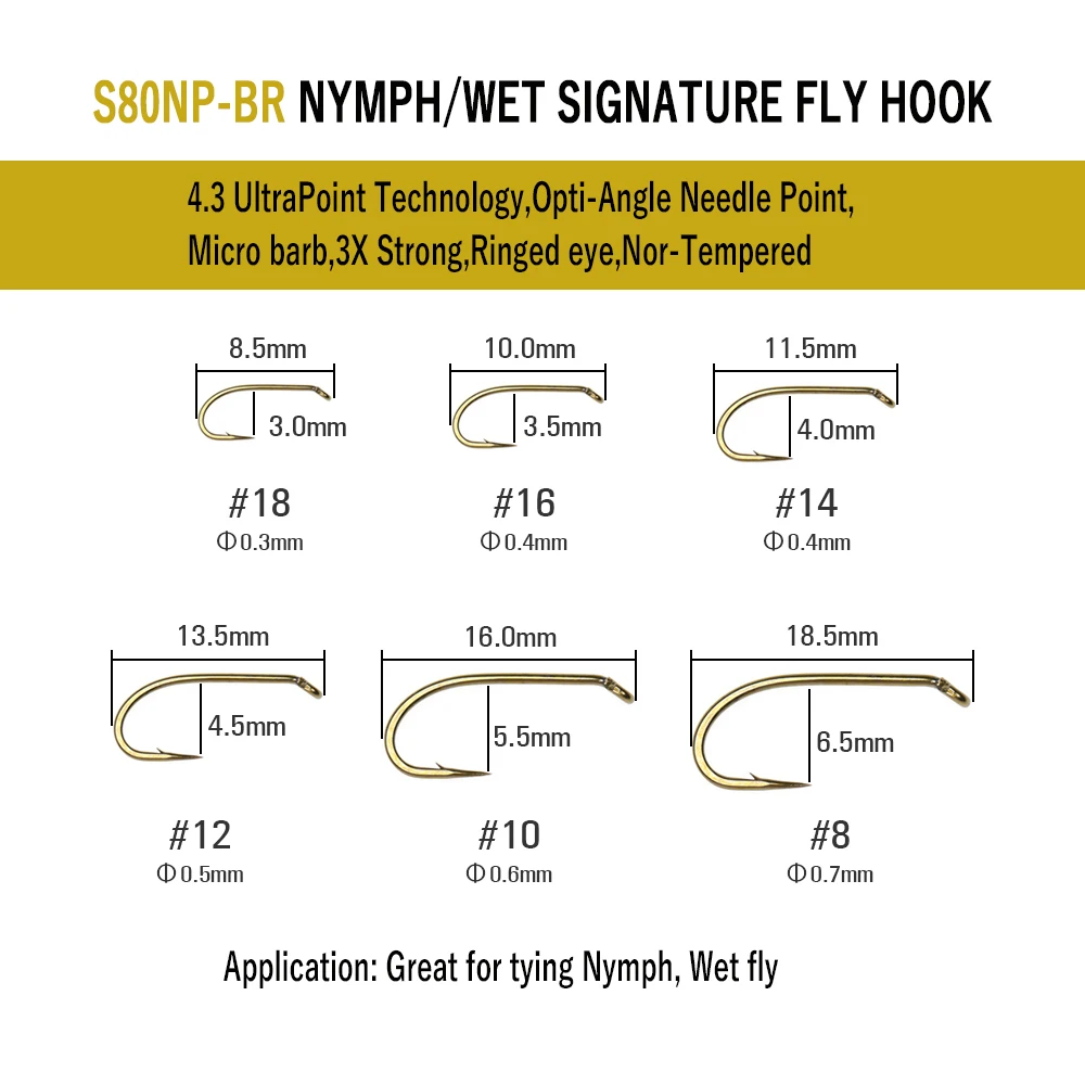 Este alambre fuerte 3X, gancho con ojos doblados hacia abajo, es la elección perfecta para atar una gran variedad de ninfas y moscas mojadas. Está hecho que resiste la presión de peces de lagos y ríos más grandes como el arcoíris, la trucha, el salmón y el parche de acero. La forma curva de brotes crea una opción más fuerte en comparación con los ganchos doblados redondos. Los anzuelos para moscas Mustad Signature presentan una nitidez y resistencia únicas. Desarrollado en cooperación con los mejores niveles de mosca del mundo hasta proporciones exactas entre espacios, curvatura, diámetro del alambre y longitud del vástago para un escalado preciso sin comparación con otros. La microbarrita se puede pellizca fácilmente sin dañar el gancho para aplicaciones sin exploración.
