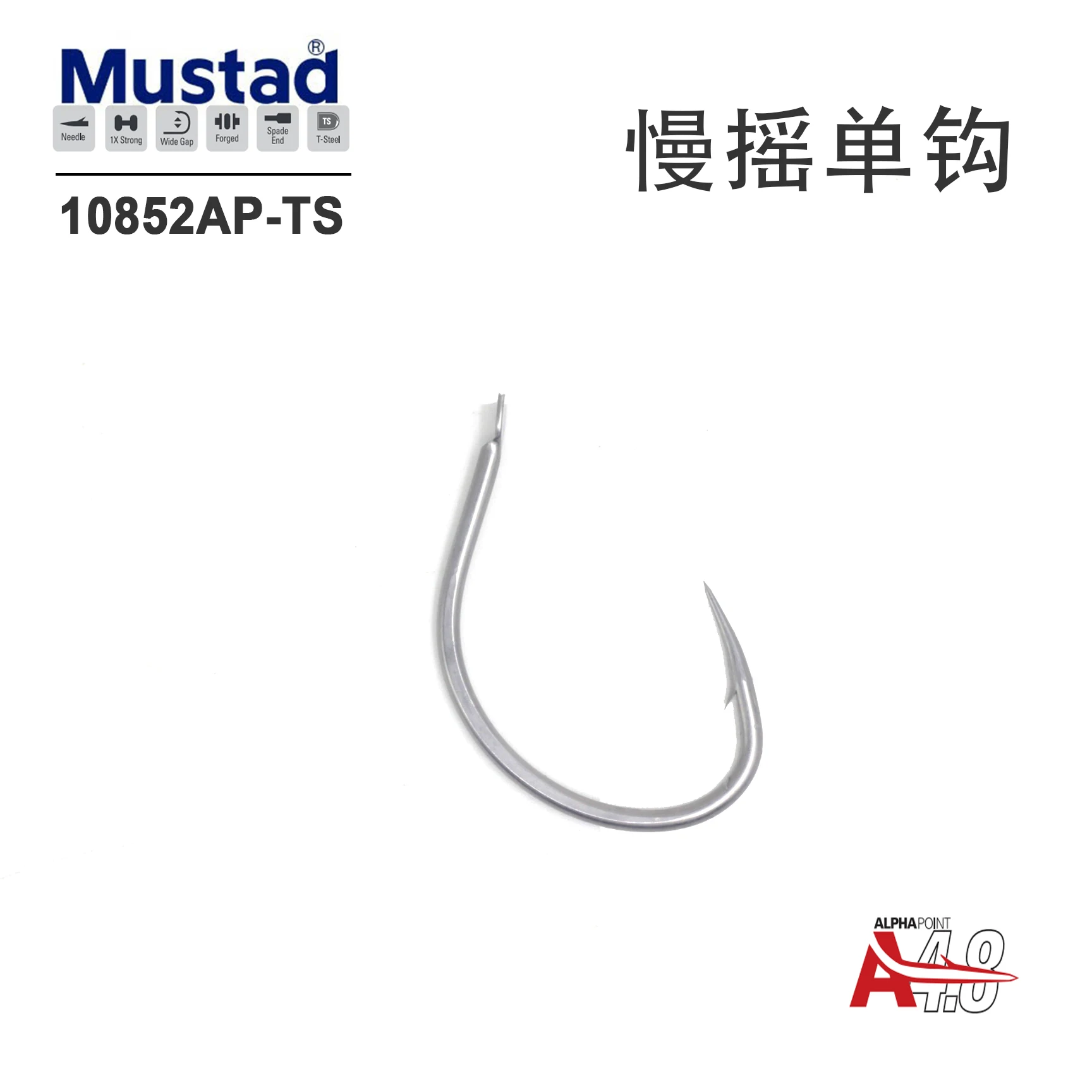 MUSTAD-anzuelo único de vibración lenta, 10852AP-TS, súper resistente al óxido, 1 señuelo de anzuelo único AP reforzado, 2024