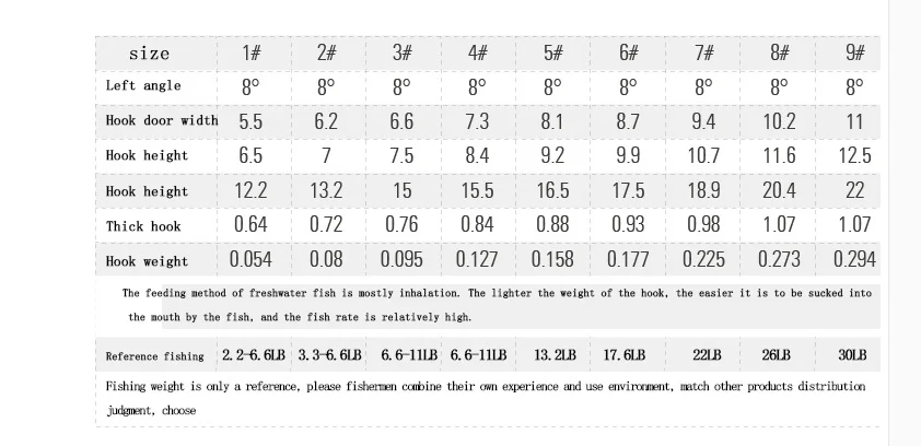 Aún no los he probado, pero los anzuelos se ven bien y la cantidad es adecuada. Ojalá hubiera un tamaño aún más grande que el 9, pero coincide con la descripción.
