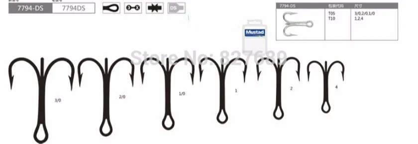 1/0 #, 2/0 # y 3/0 #: Ganchos 5/paquete