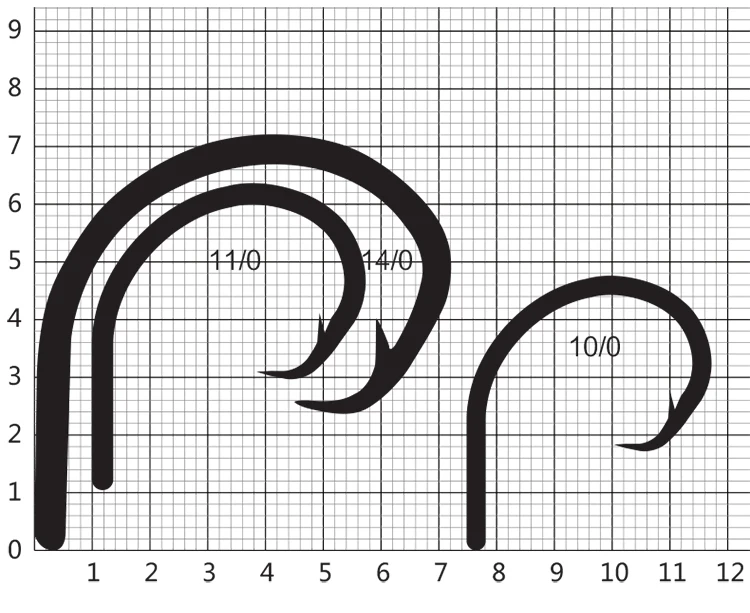 12/0# (3 ganchos en un paquete).