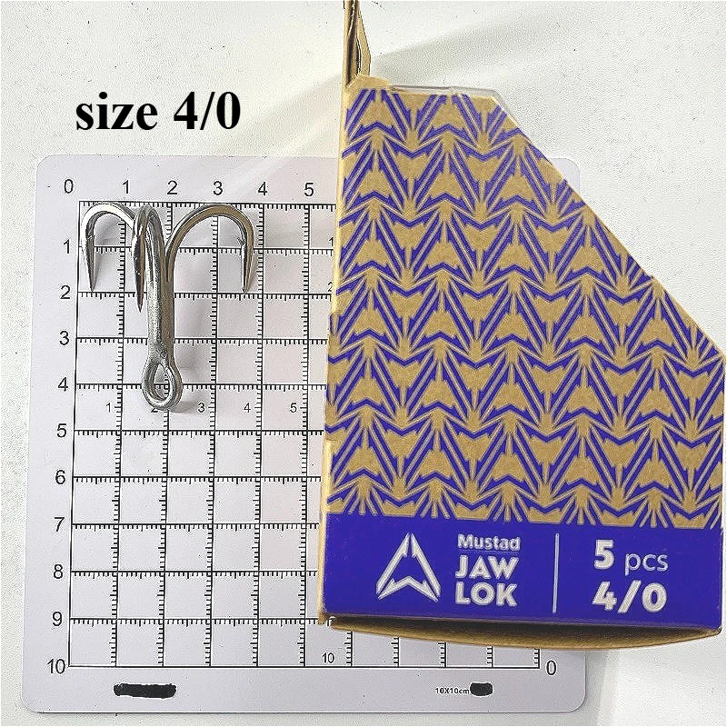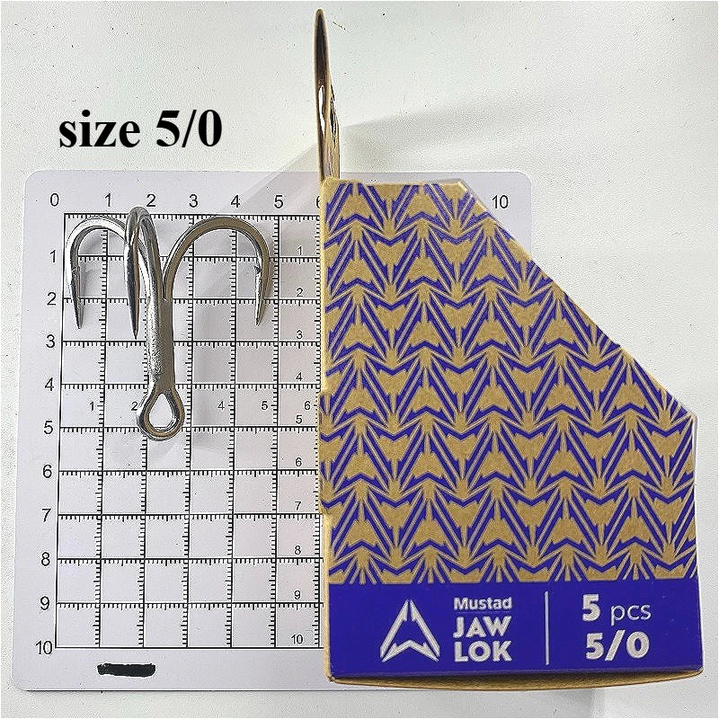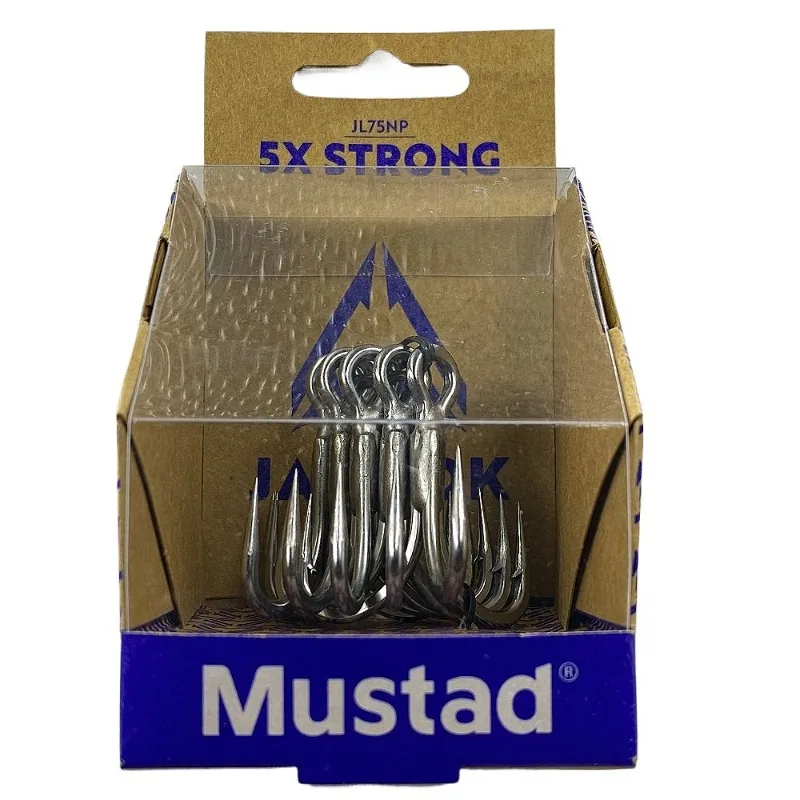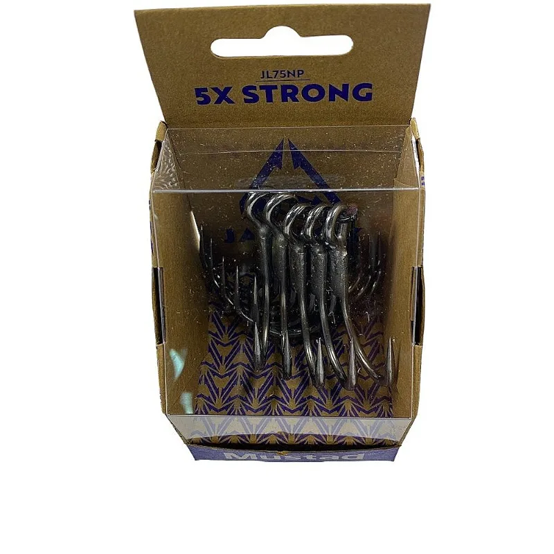 Mustad JL75NP Jaw Lok en línea 5X fuerte juego grande señuelo de agua salada anzuelo de pesca triple