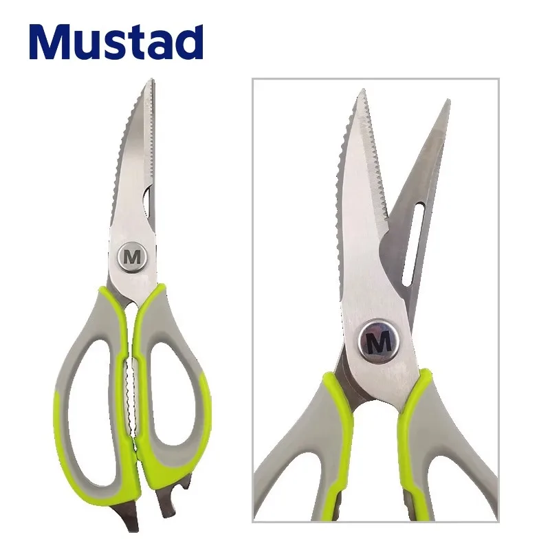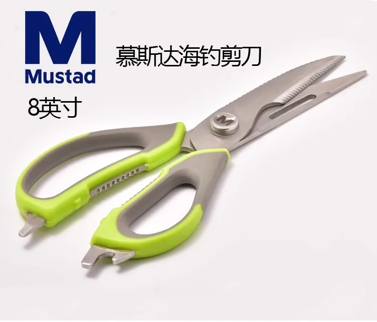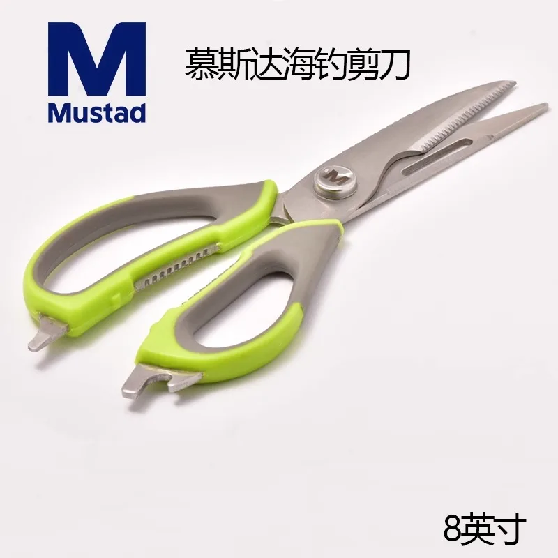Mustad MT122 tijeras para matar peces de 8 pulgadas, cuchilla de pesca, tijeras de línea de PE de pesca multifuncionales de acero inoxidable