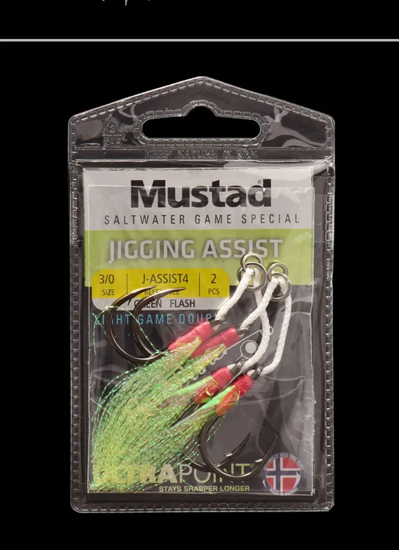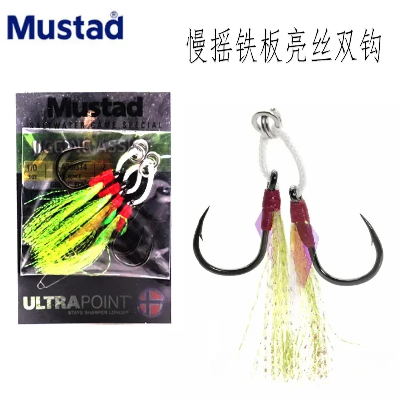 Mustad-placa de hierro de balanceo lento para pesca en el mar, doble gancho, línea de caballo fuerte, encuadernación luminosa de seda UV