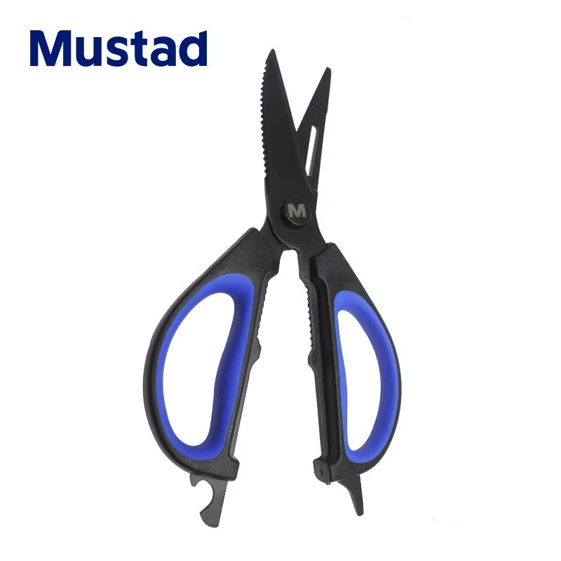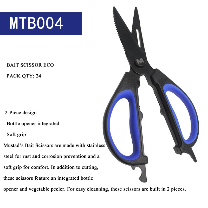 MUSTAD-Tijeras multifuncionales MTB004 para matar cebo, sedal de pesca de mar de acero inoxidable, doble cara