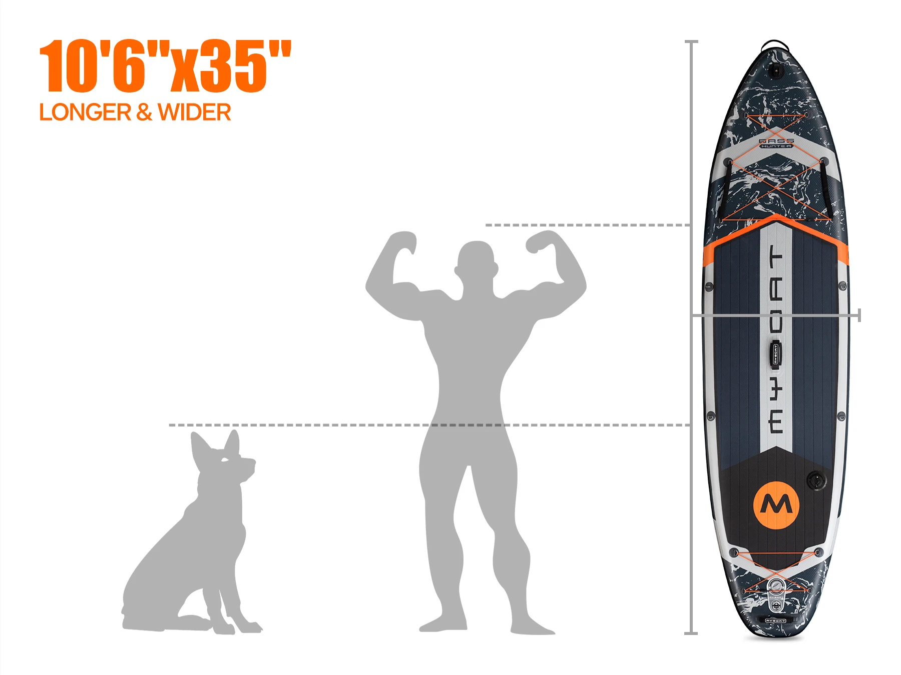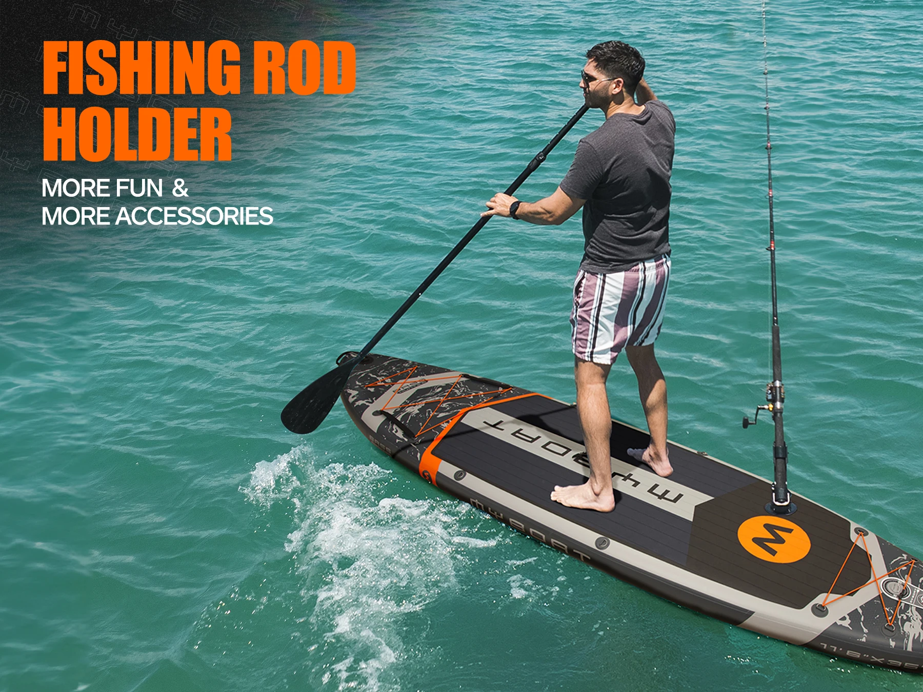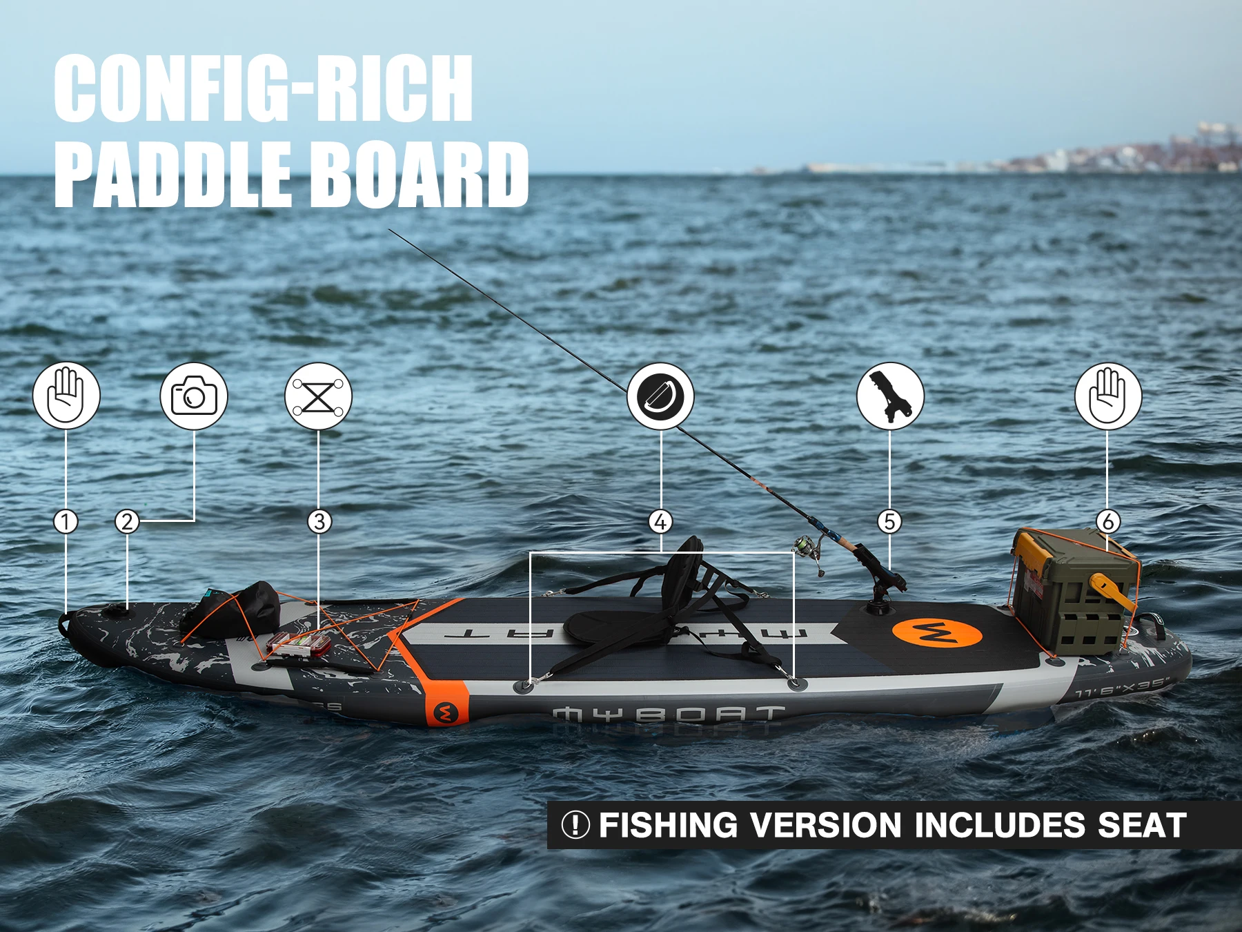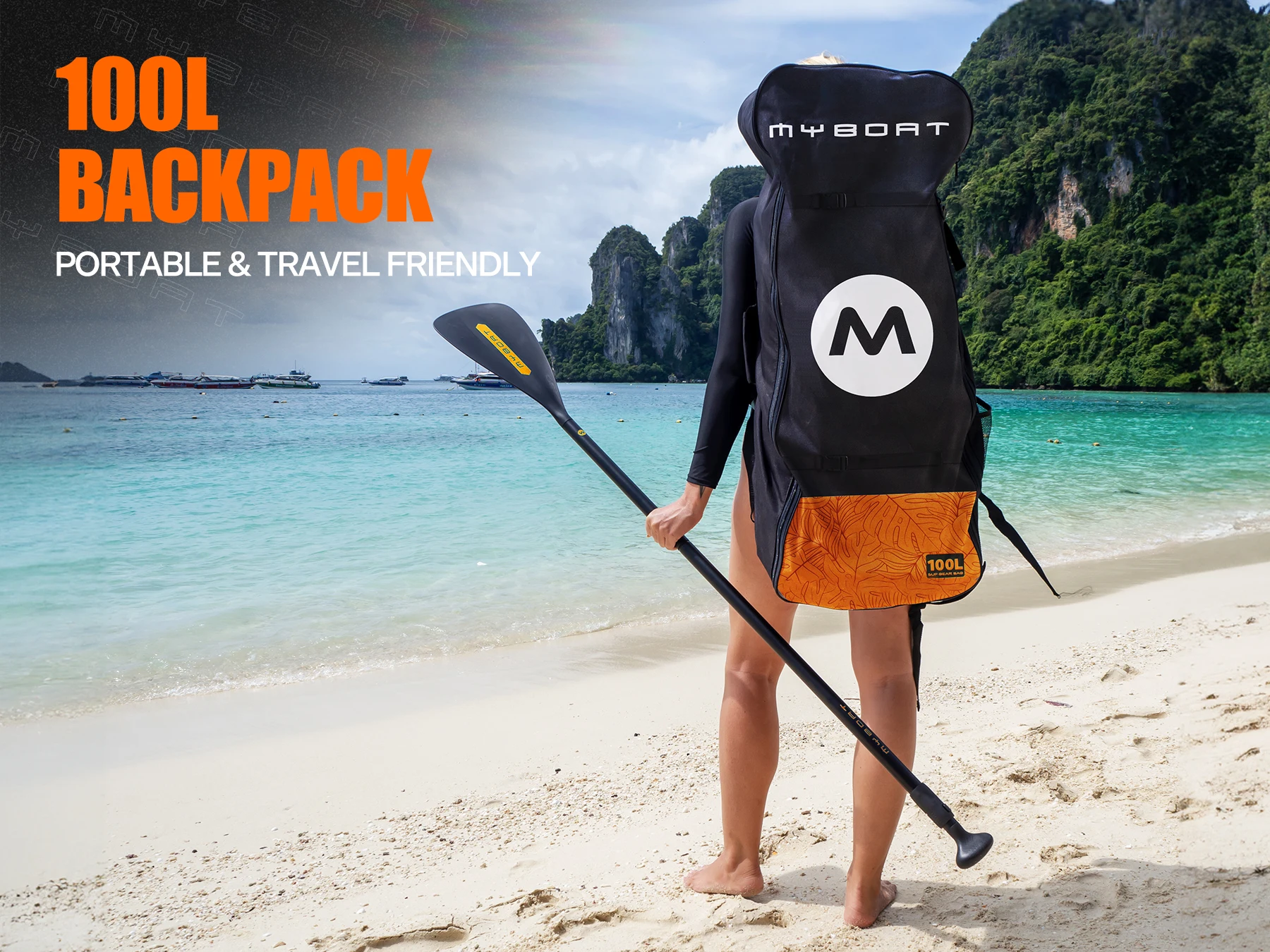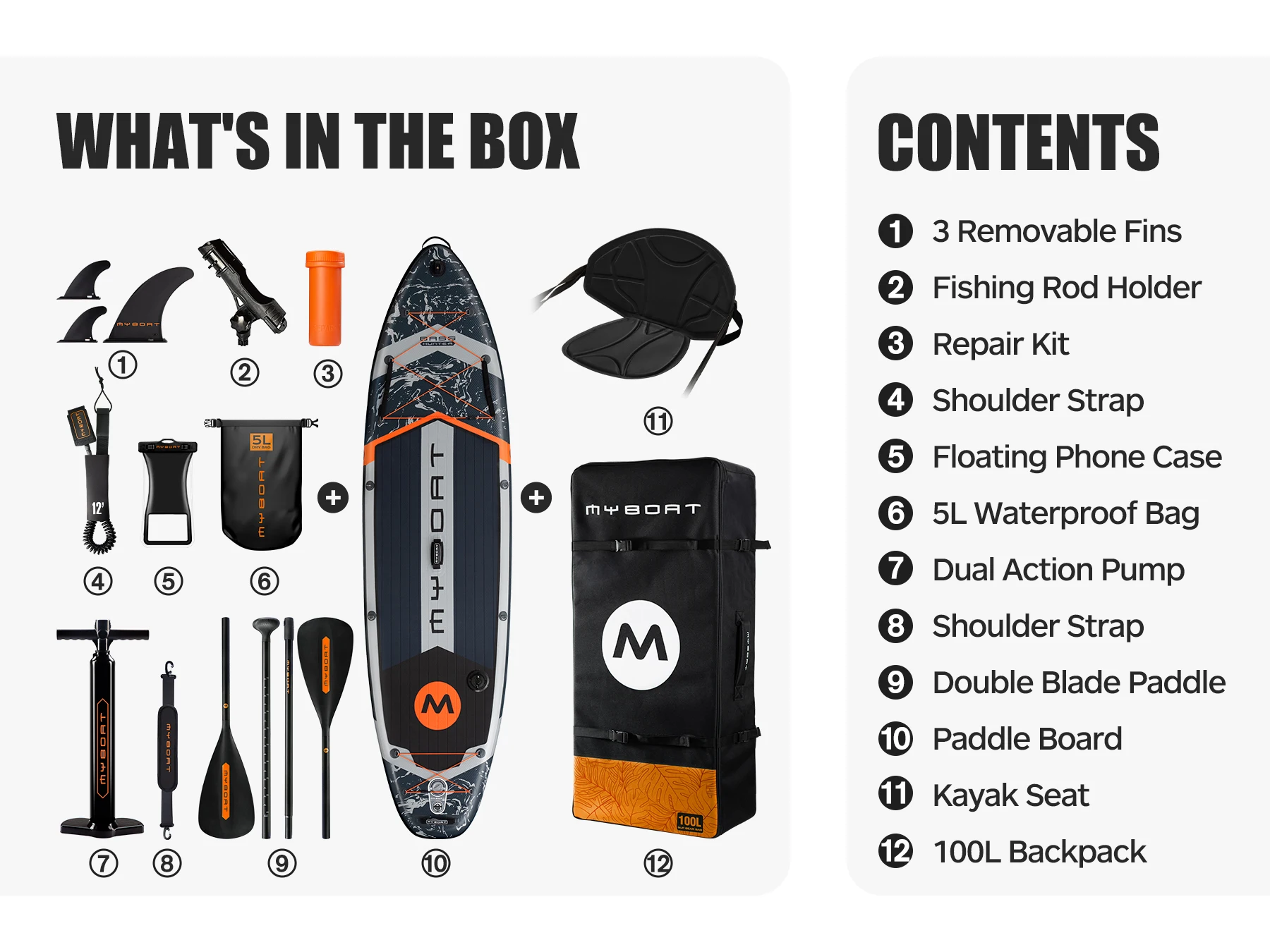 La calidad del producto es bastante alta, la entrega tardó 2 días. Muchas pequeñas cosas bonitas: una funda sellada para el teléfono, un cubo sellado de 5L, un soporte para varilla, una correa para transporte, una correa SUB en estado inflado, una mochila práctica para transportar el conjunto.