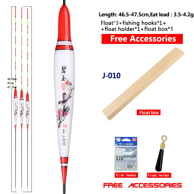 Flotadores de pesca de 3 piezas + 1 caja de boya + 1 soporte de flotador + 1 anzuelos de pesca de bolsa