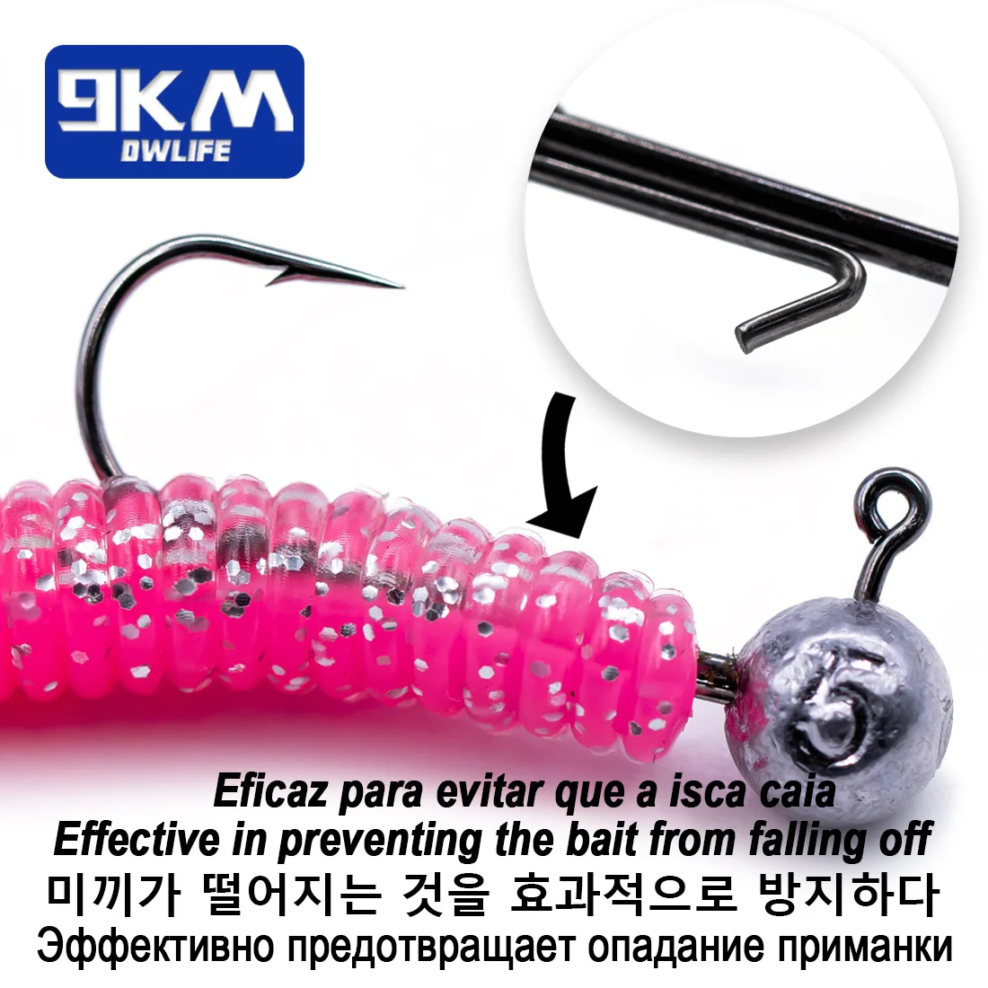 Gancho de vástago largo: el vástago es más largo que un anzuelo estándar estilo ceboolder, la longitud adicional es ideal para una variedad de cebos como gusanos largos y curvos, langostinos y pinzas, cebos blancos y tiras, cebos naturales de agua salada.