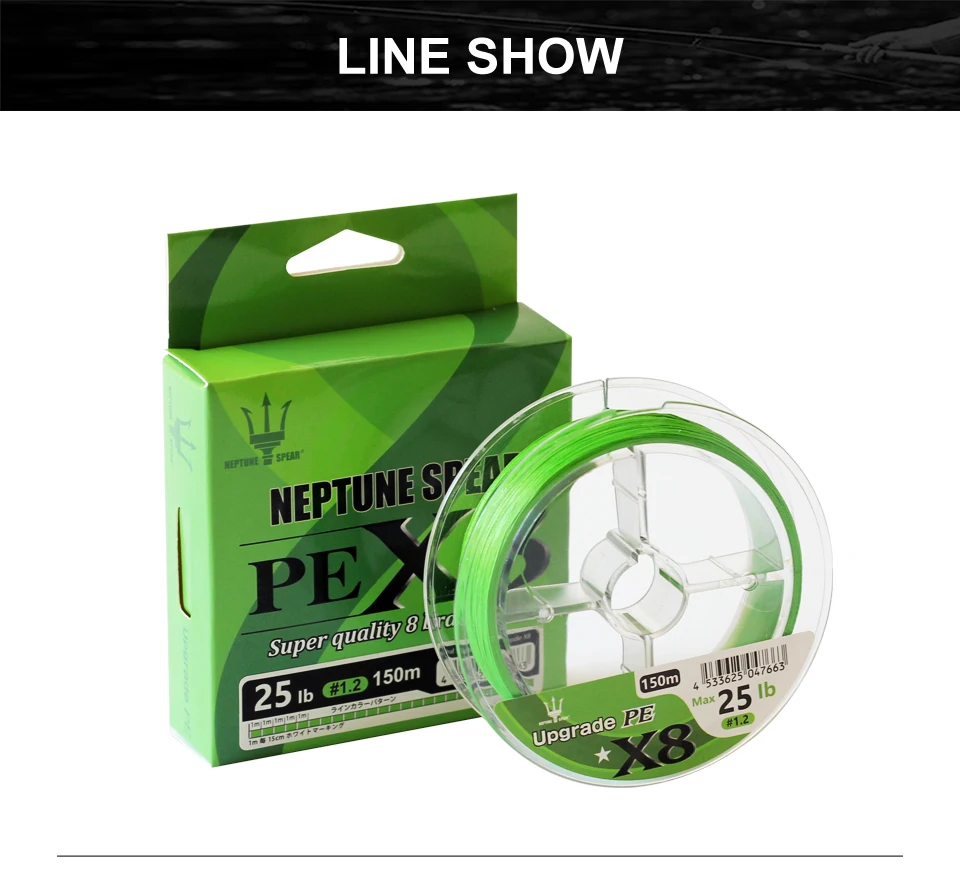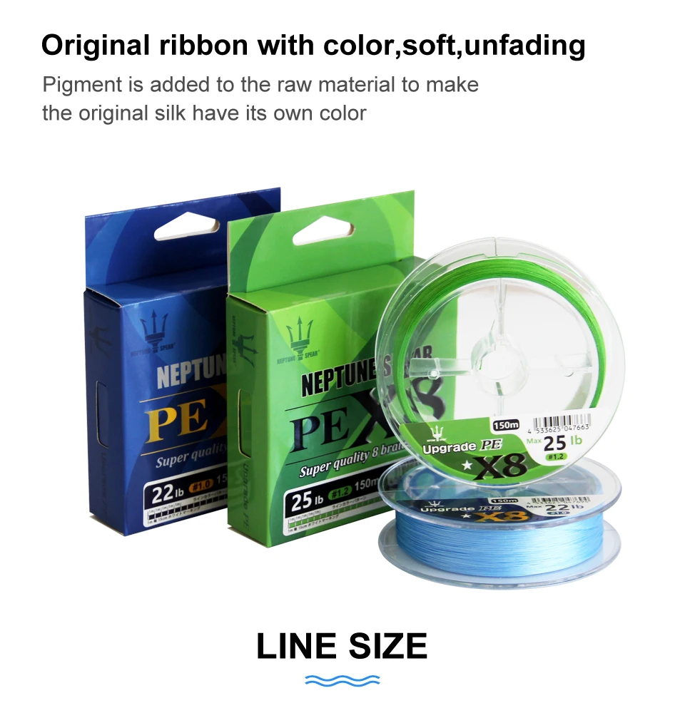 Hilo de pesca trenzado NEPTUNE SPEAR X8, hilo de pesca de 150M 8x, multifilamento PE para carpa, todo para productos de pesca marina.