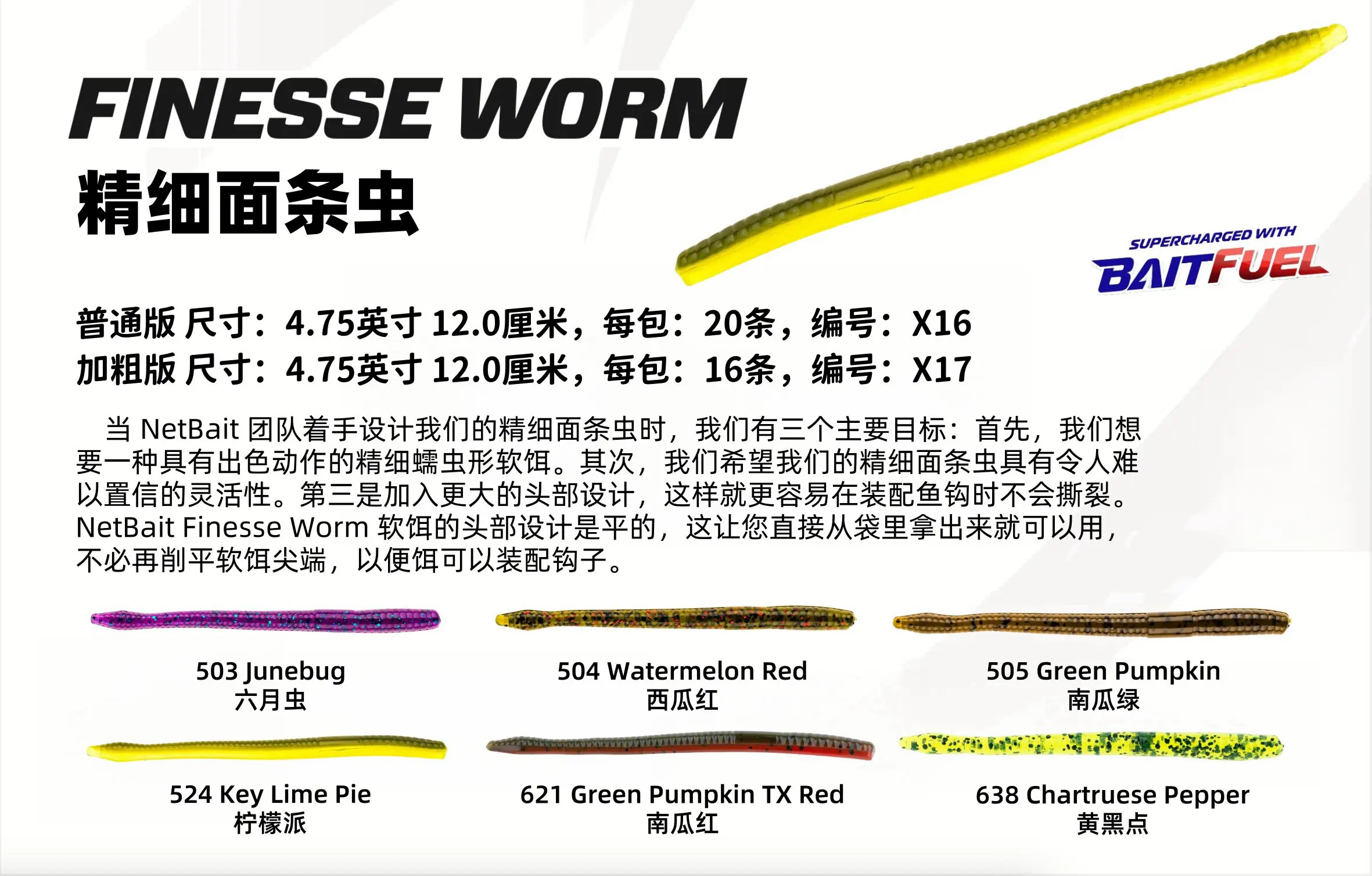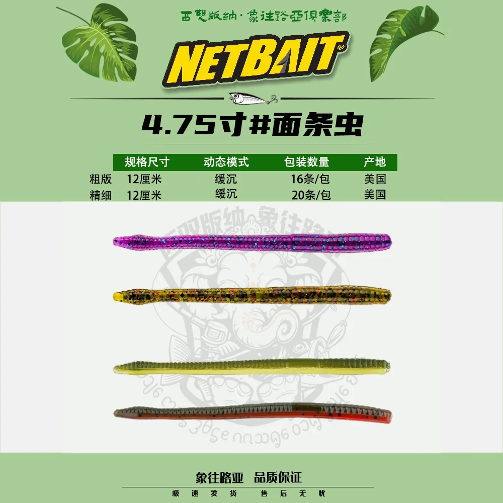 NETBAIT Noodle Worm American Finesse Worm 4,75 pulgadas Junta fina NEKO viene con señuelo para peces