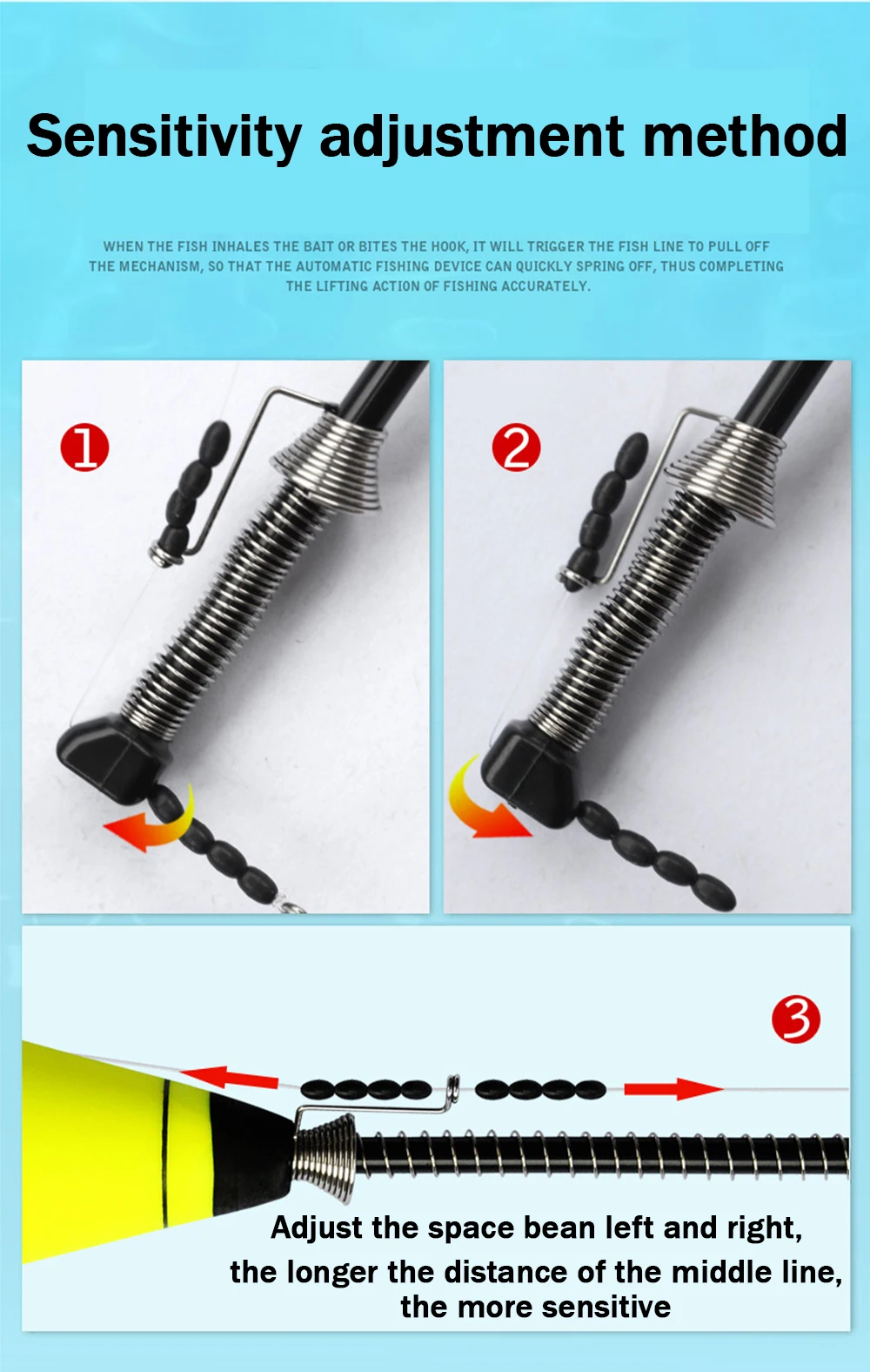 Utilice el pez para morder el anzuelo y saque el pez del mecanismo, use el resorte para rebotar para recoger rápidamente la línea, enganche automáticamente la boca del pez y reduzca el movimiento del pez.