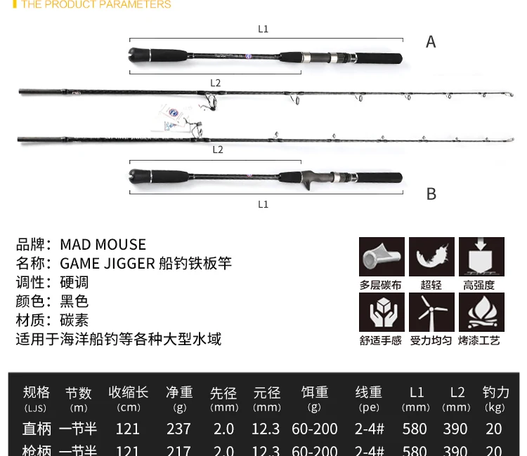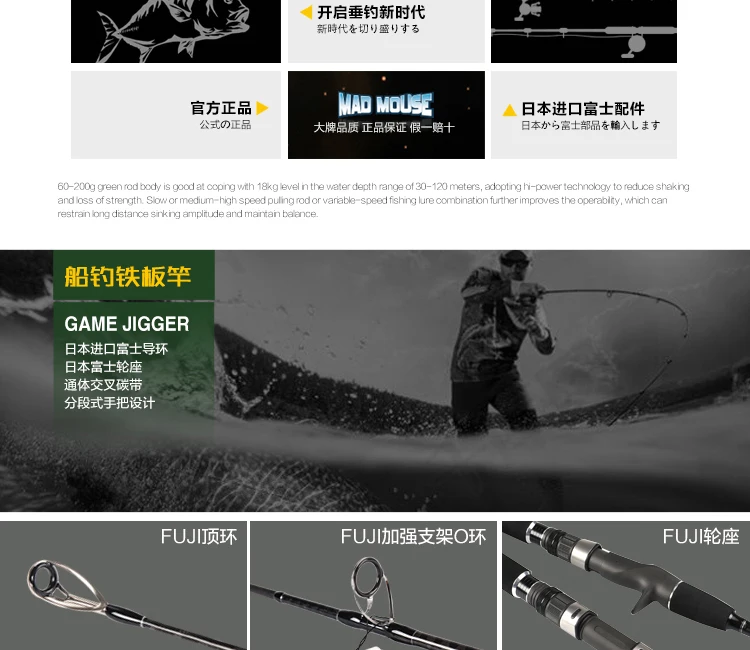 NewJapan Full Fuji Parts MADMOUSE Jigging Rod 1,8 M PE 2-4 peso de señuelo 60-200G 20 kg caña de barco giratoria/fundida caña de pescar en el océano
