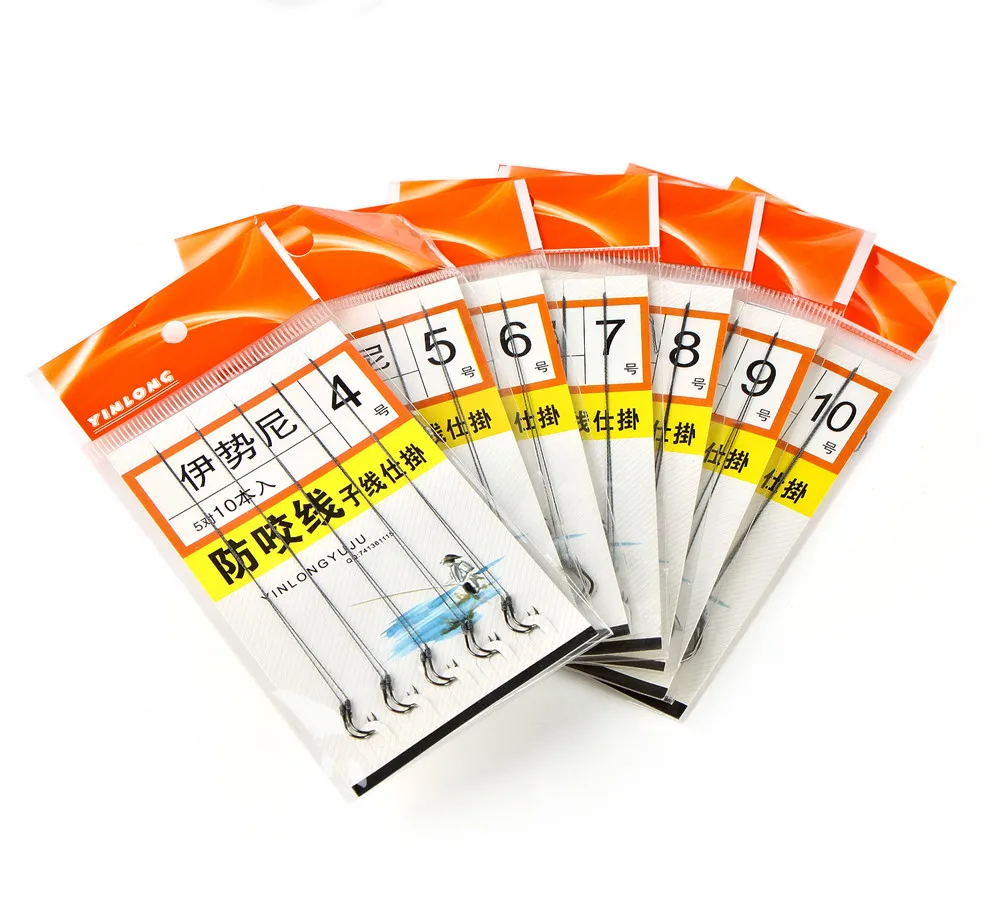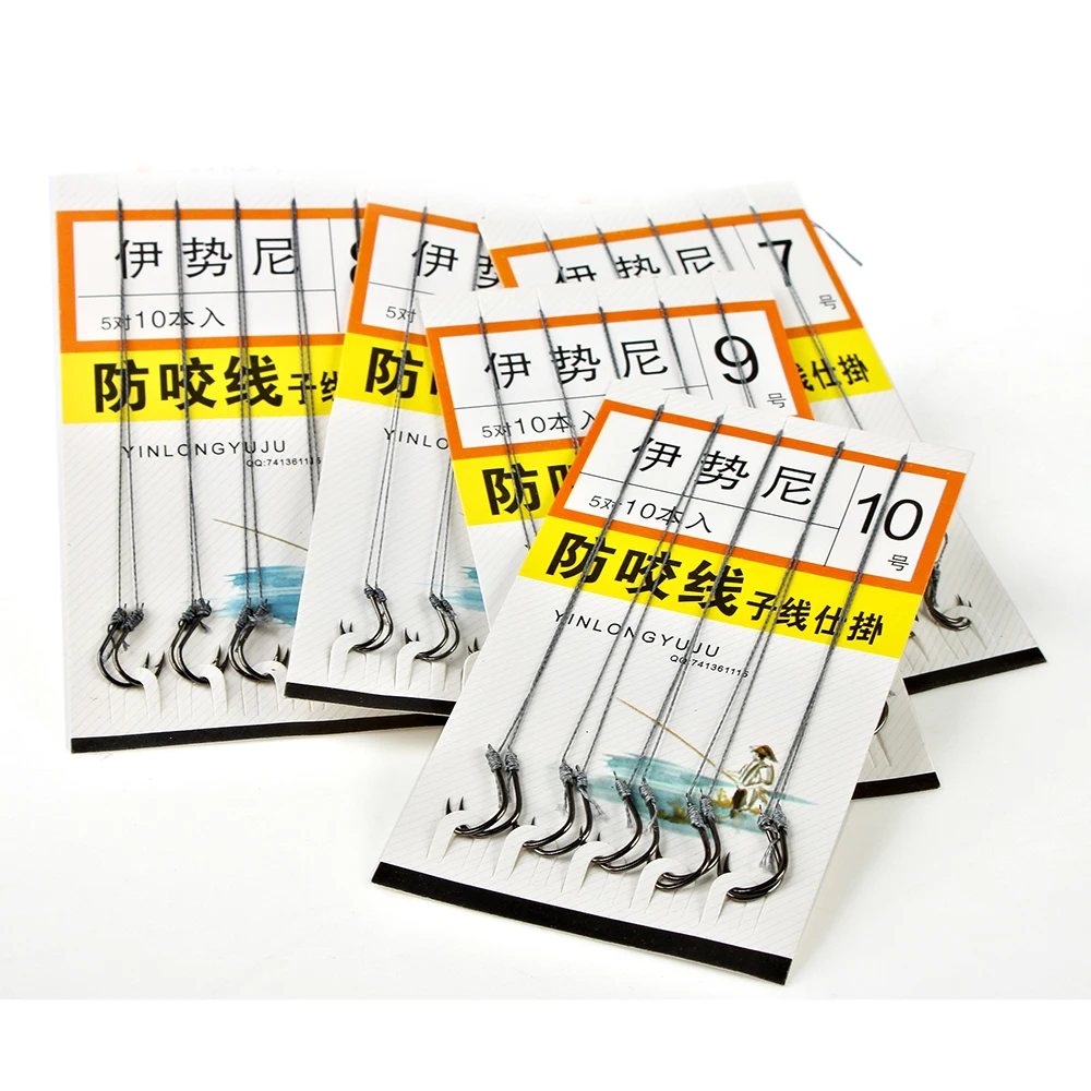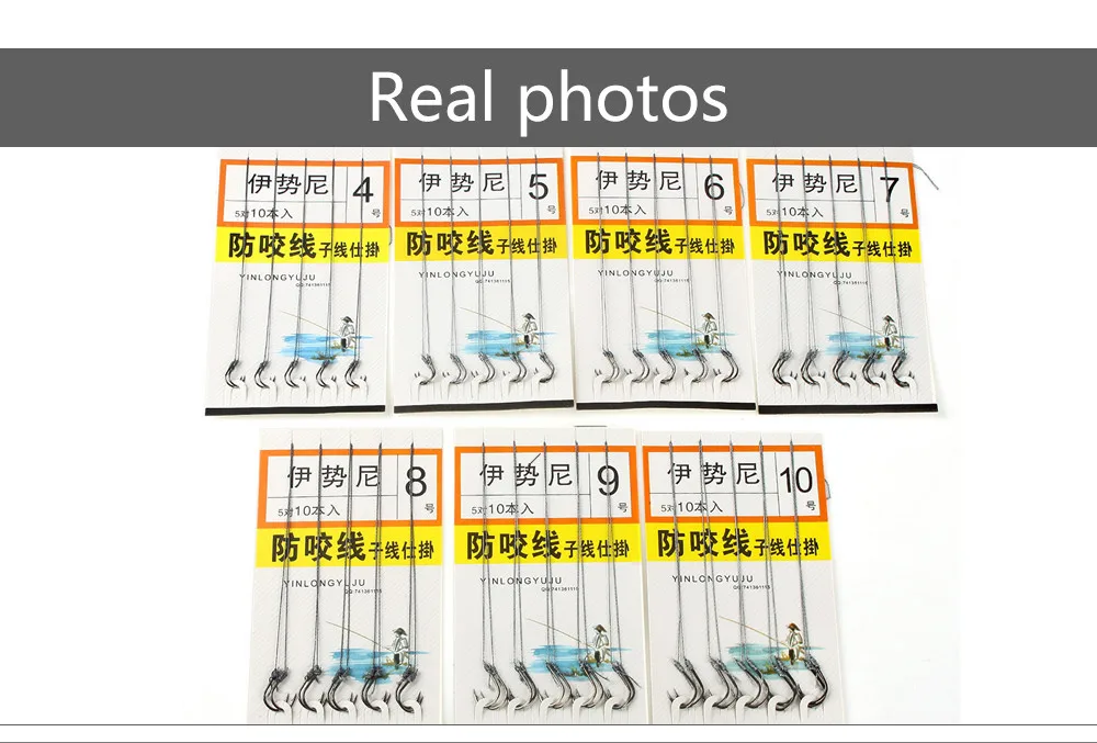NGB 1 paquete 4 # -10 # ISEAMA-anzuelo de pesca con línea de púas antimordida de PE, accesorios para anzuelos de carpa individual