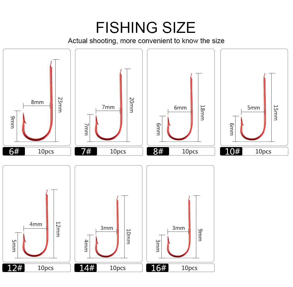 NGB 10 Uds. Anzuelos de pesca de acero rico en carbono tamaño de anzuelos de púas # 6- # 16 accesorios de pesca de carpa juego de anzuelos con ojos Pesca