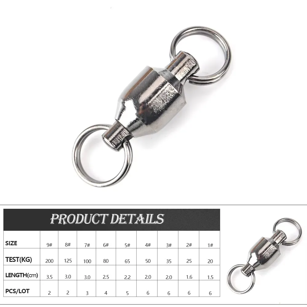 NGB 2-6PCS Giratorio de pesca con rodamiento de bolas con anillo dividido 1 # -9 # Señuelo de pesca Conector Terminal Aparejos de pesca