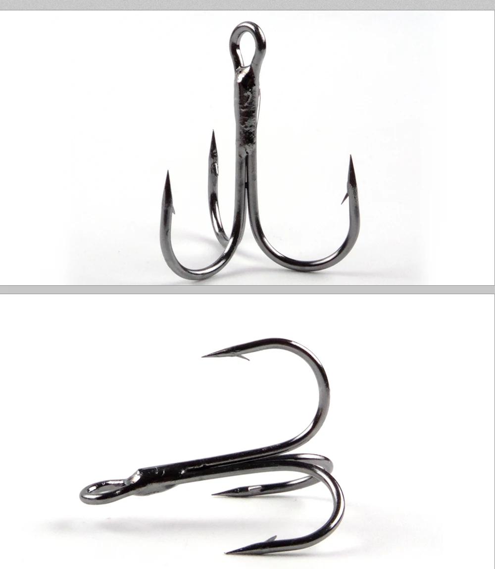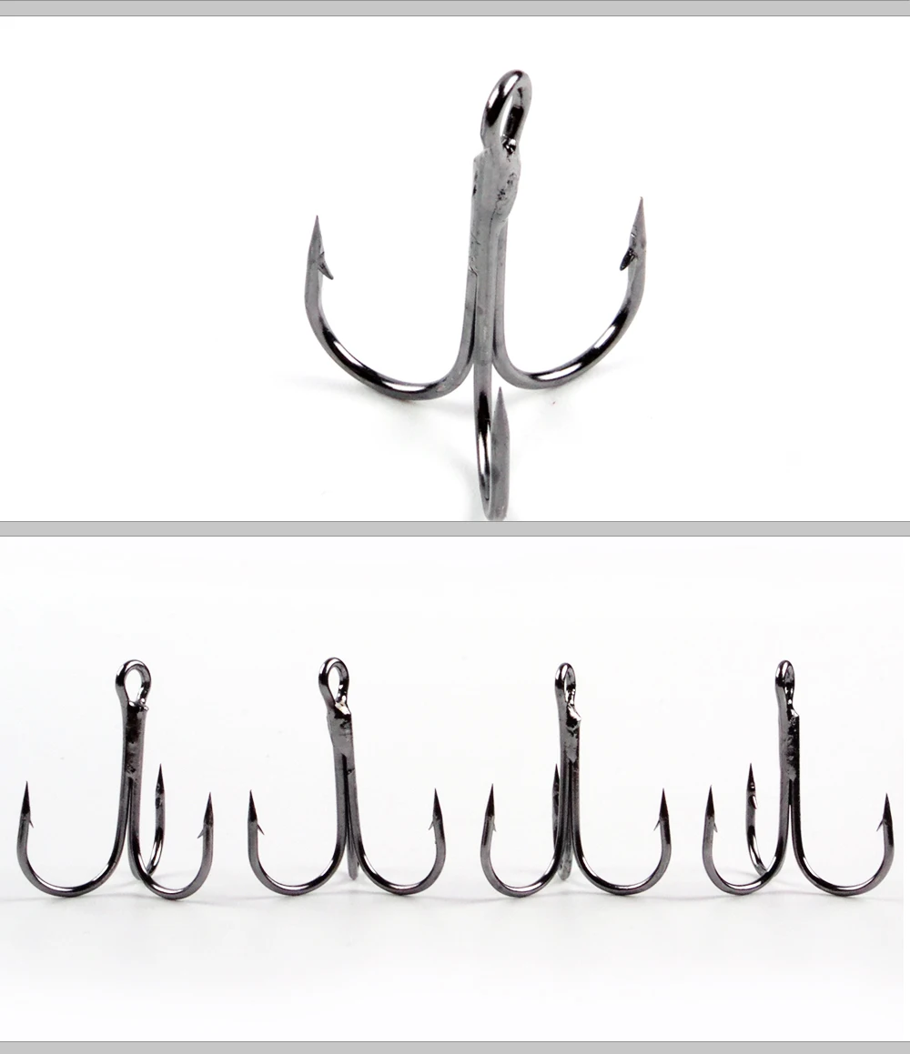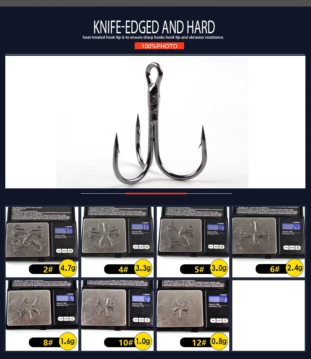 NGB 20 piezas anzuelo de pesca triple de acero rico en carbono 2 # 4 # 5 # 6 # 8 # 10 # 12 # Aparejos de pesca con anzuelo de púas con cebo suave