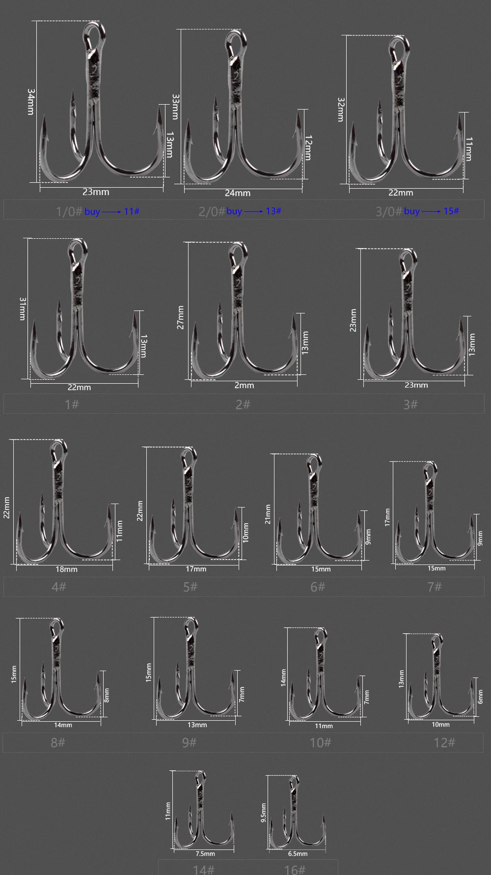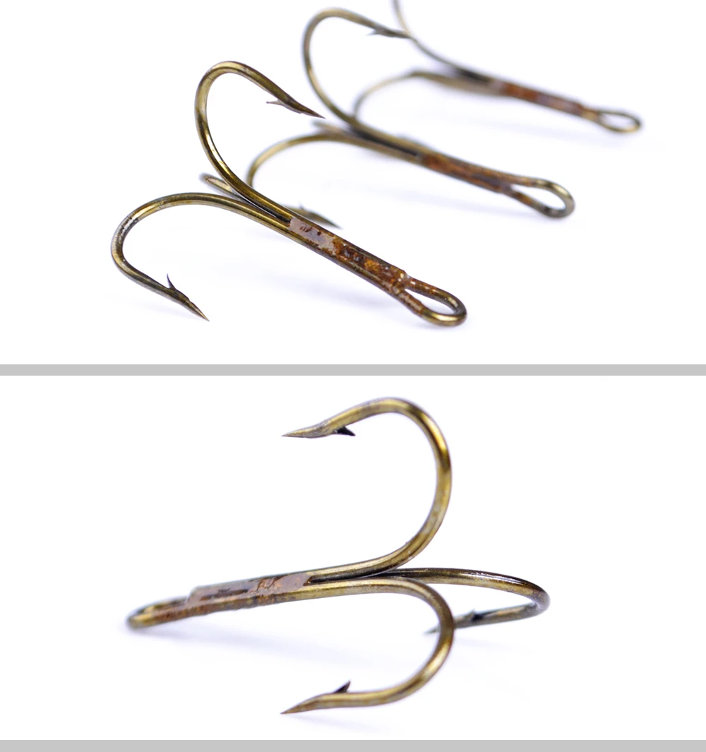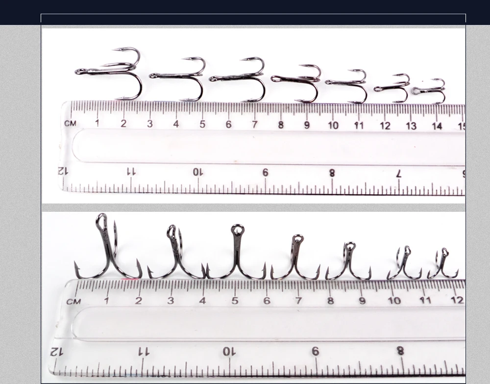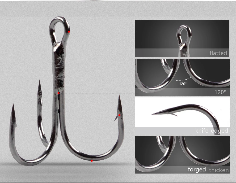 NGB 20 piezas anzuelo de pesca triple de acero rico en carbono 2 # 4 # 5 # 6 # 8 # 10 # 12 # Aparejos de pesca con anzuelo de púas con cebo suave