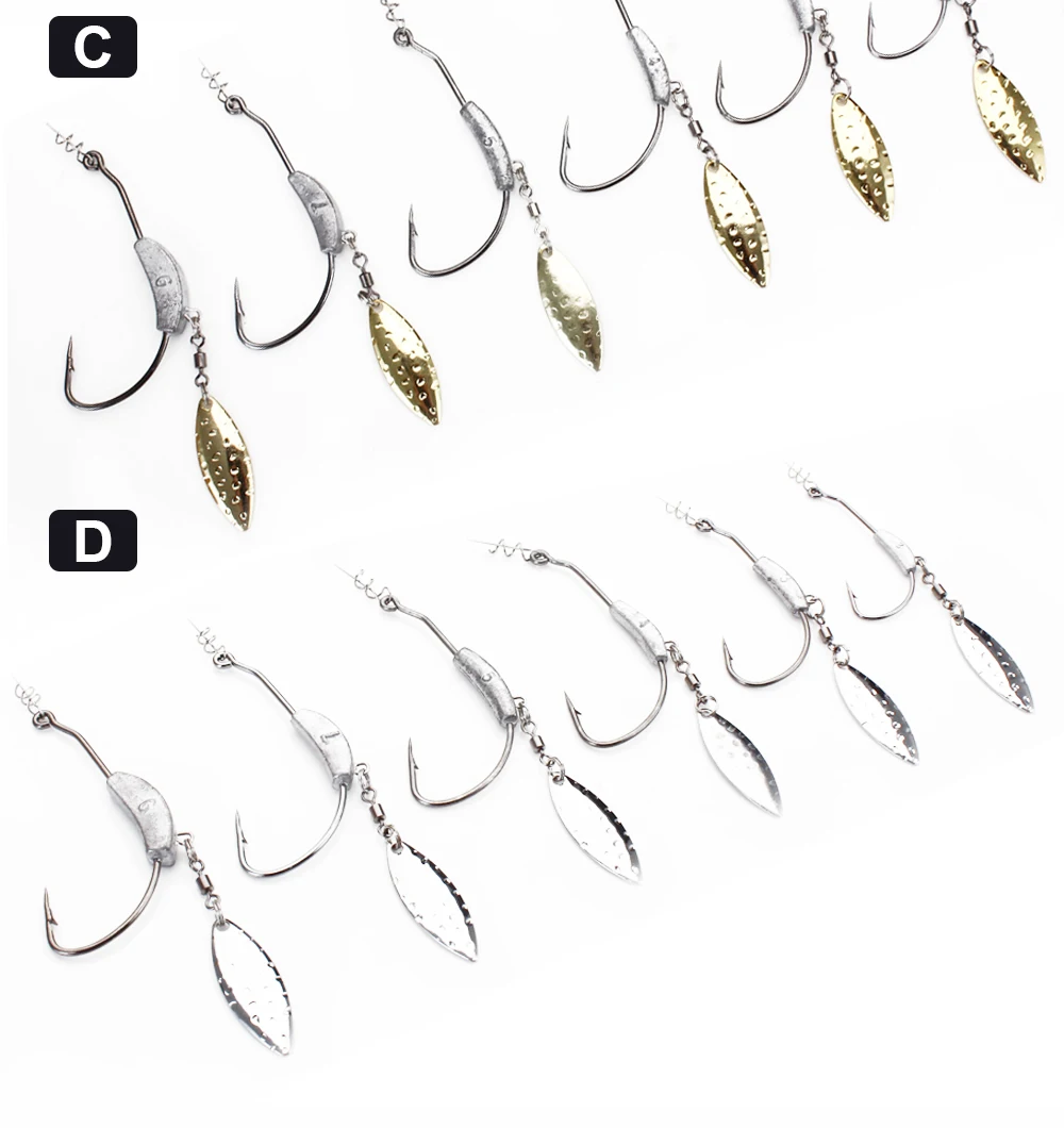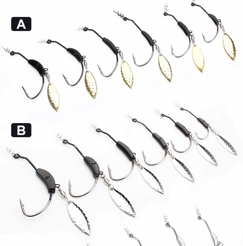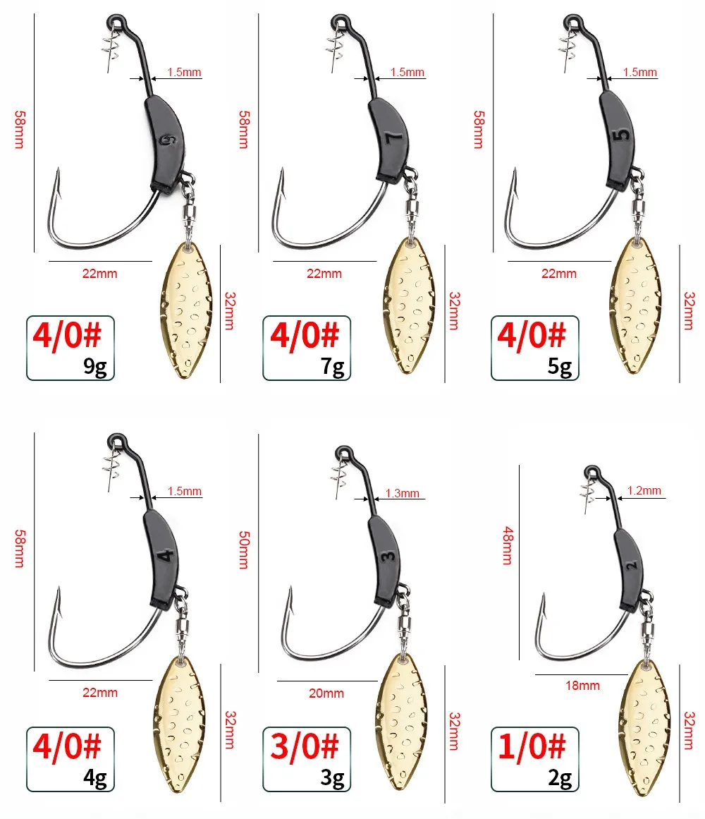 NGB 2g 3g 4g 5g 6g 7g 9g anzuelo de manivela de acero alto en carbono con señuelo de cuchara de Metal anzuelos de pesca compensados con púas cebo aparejos de Lucio