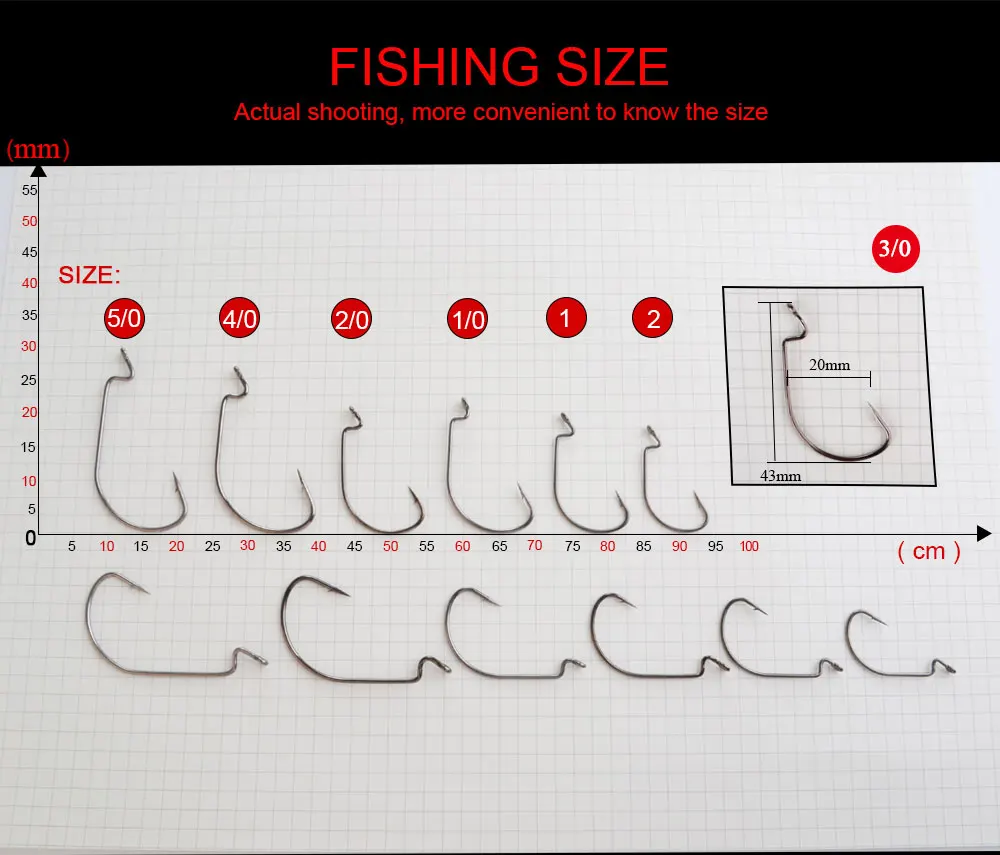 NGB 50PCS Anzuelos de pesca compensados Acero con alto contenido de carbono 5/0 # -2 # Anzuelos de manivela de señuelo suave con cebo de gusano con accesorios de pesca ocular