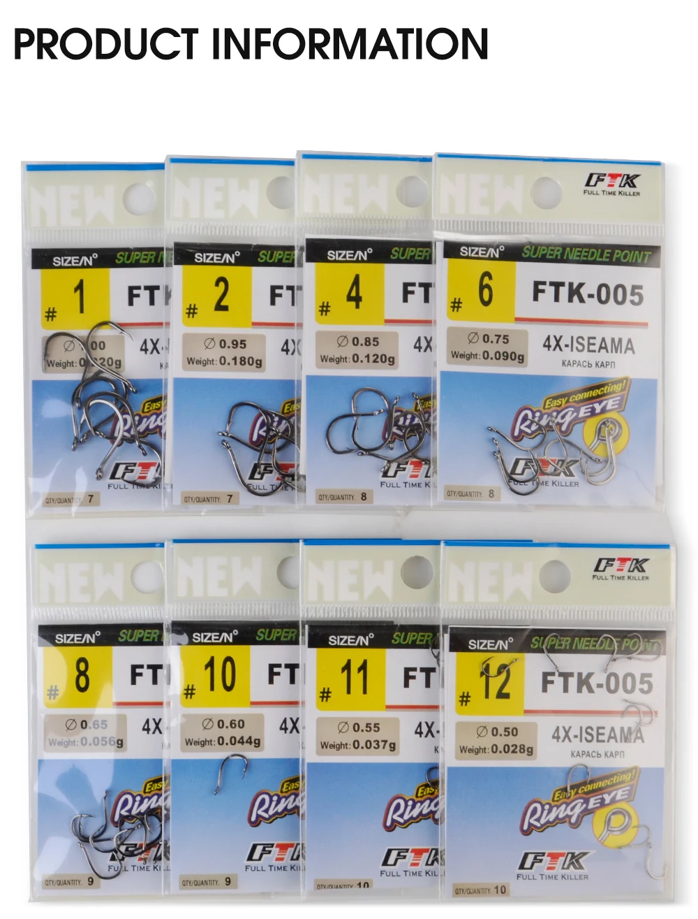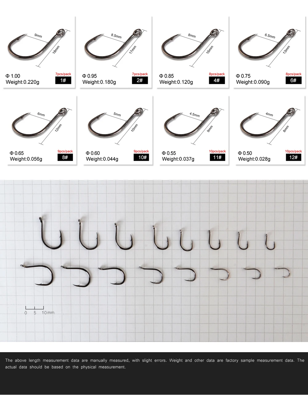 NGB 7-10PCS Anzuelo de pesca de acero rico en carbono ISEAMA 1 # -12 # Anzuelo de carpa individual con púas y accesorios de pesca con ojos