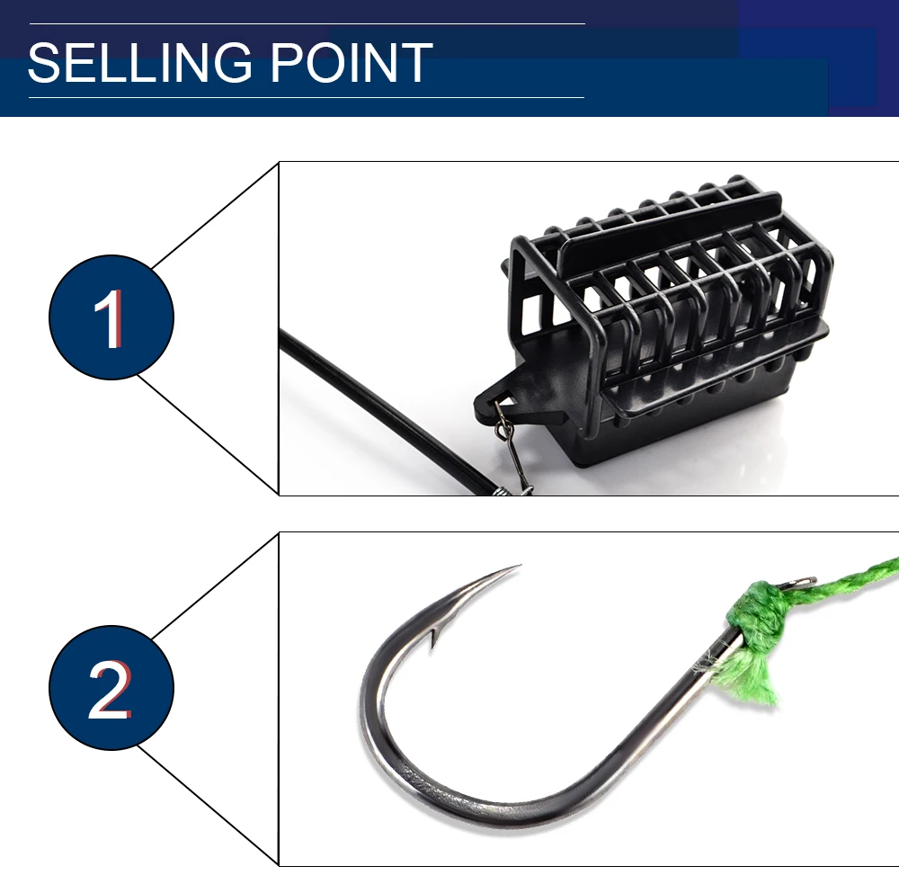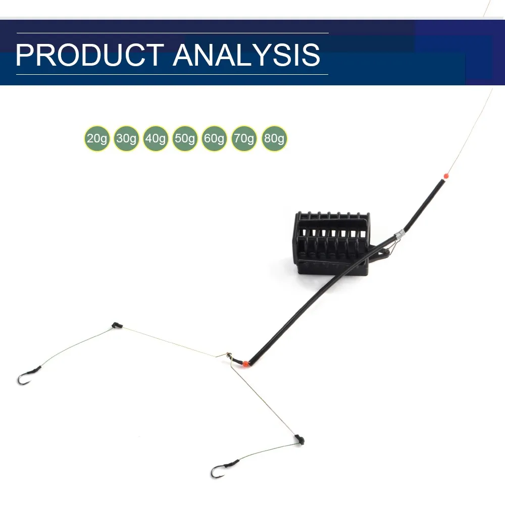 NGB-jaula para cebo de pesca de carpa, aparejo para el cabello, 20g, 30g, 50g, 80g, alimentador, plomo con línea, anzuelos de acero rico en carbono, aparejos de pesca