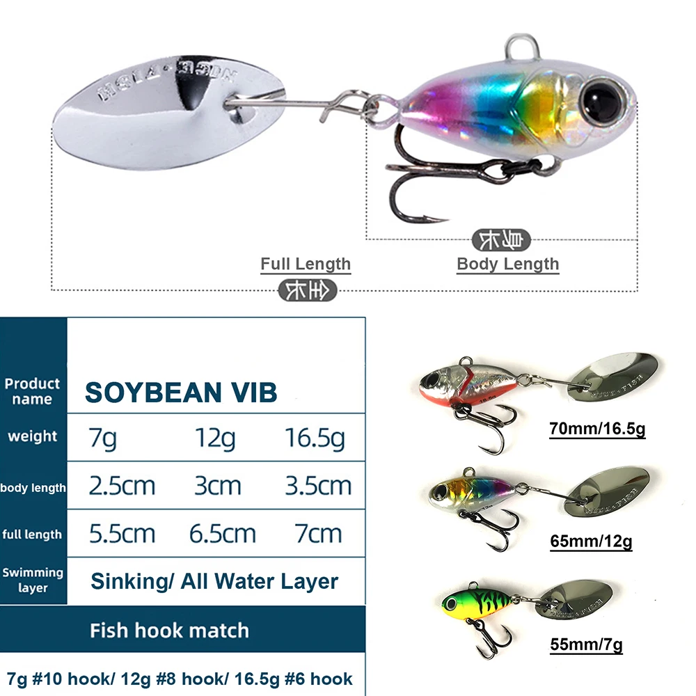 NICEFISH-señuelo de Metal para pesca de lubina, anzuelo Artificial con vibración, cuchara giratoria, VIB, 7/12/16g