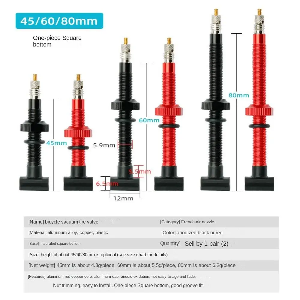 Válvula: presta F/V vástago: aleación de aluminio, núcleo anodizado: principalmente latón, base niquelada: rectángulo, tapa integrada: roscado, plástico o aleación por opción de pedido altura: 45/60/80mm (1,77/2,36/3,15 pulgadas) por opción de pedido Peso: g/pc 4,8 (45mm (1,77 pulgadas), 5,5 g/pc (60mm (2,36 pulgadas), 6,2 g/pc (80mm (3,15 pulgadas) el paquete incluye: 1 ud.