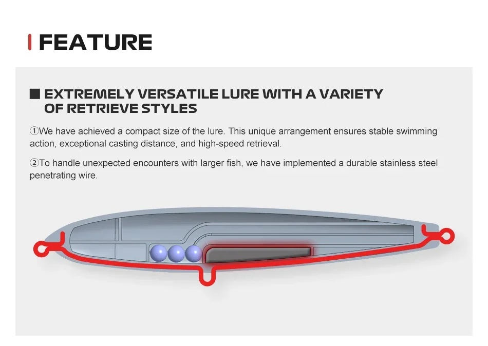 El peso interno deslizante le da al señuelo una distancia de lanzamiento excepcional.