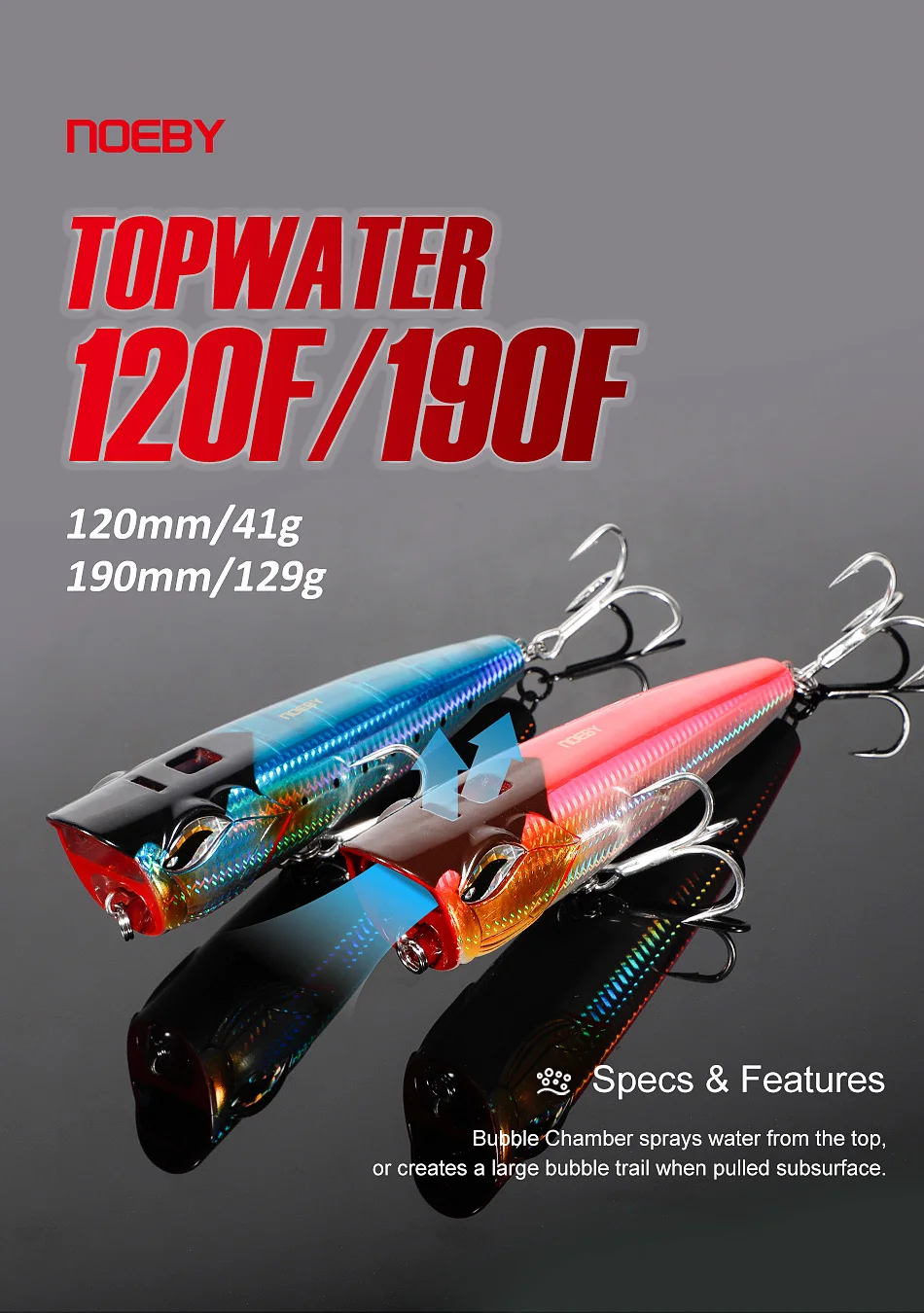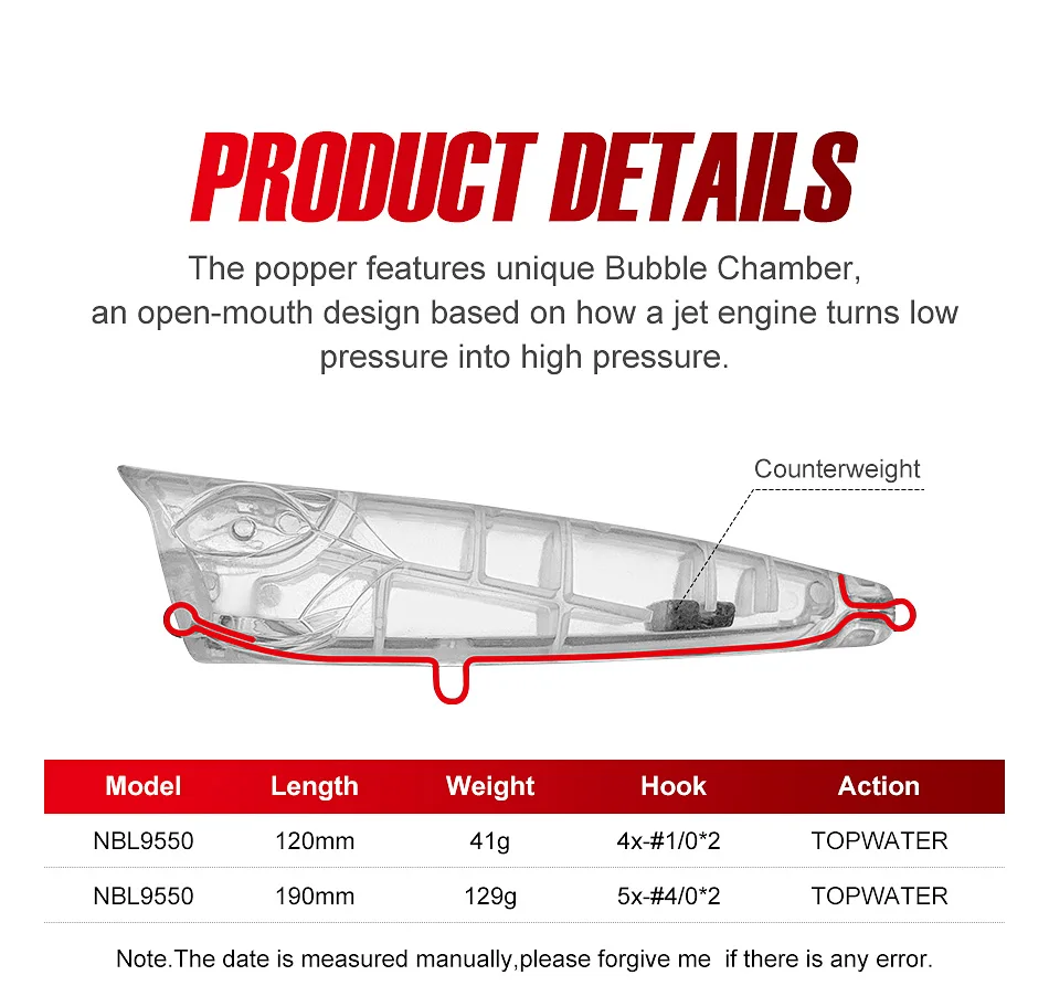 NOEBY-señuelos de pesca Popper de 190mm, 126g, 150mm, 86g, 120mm, 41g, para extracción de atún, agua salada, cebos artificiales de agua superior, aparejos de pesca para barcos NBL9550