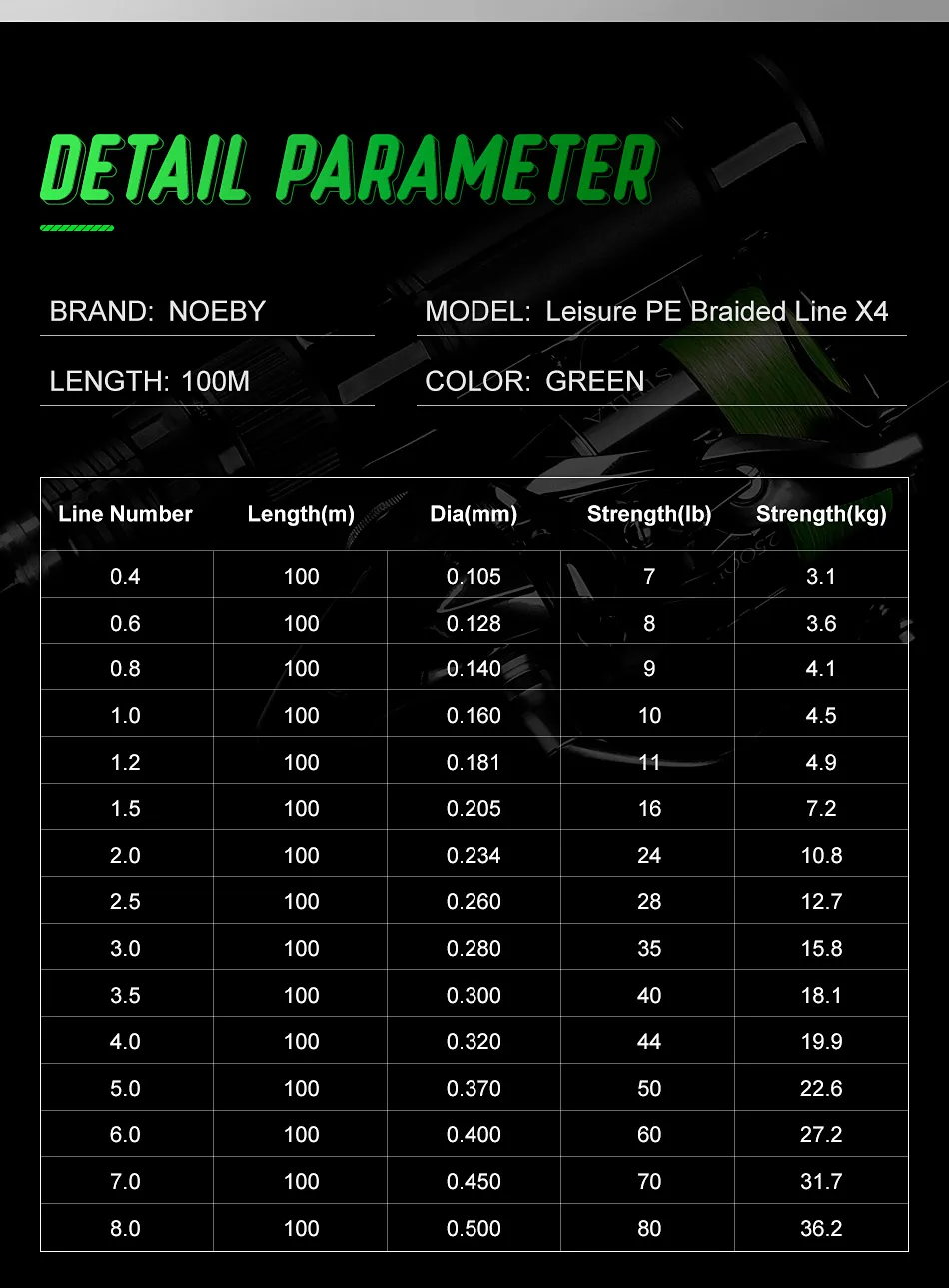 NOEBY 100m 300m línea de pesca PE 4 hilo trenzado hilo de alambre 7-80LB redecilla para pesca en el mar pesca de invierno línea de PE 4 aparejos